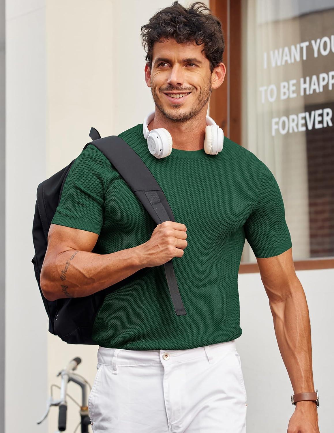 COOFANDY Men’s T- Shirts Casual Short Sleeve Crewneck Shirts Solid Textured Knit Pullover Tees(Green)
