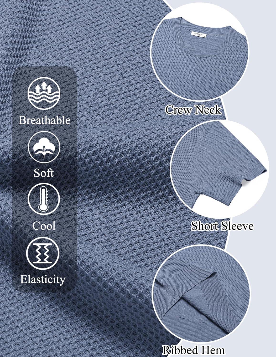 COOFANDY Men's T- Shirts Casual Short Sleeve Crewneck Shirts Solid Textured Knit Pullover Tees(Grey Blue)