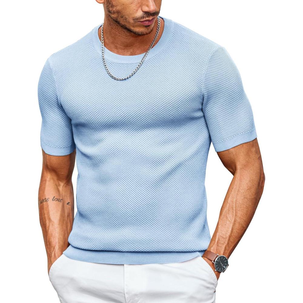 COOFANDY Men's T- Shirts Casual Short Sleeve Crewneck Shirts Solid Textured Knit Pullover Tees(Light Blue)