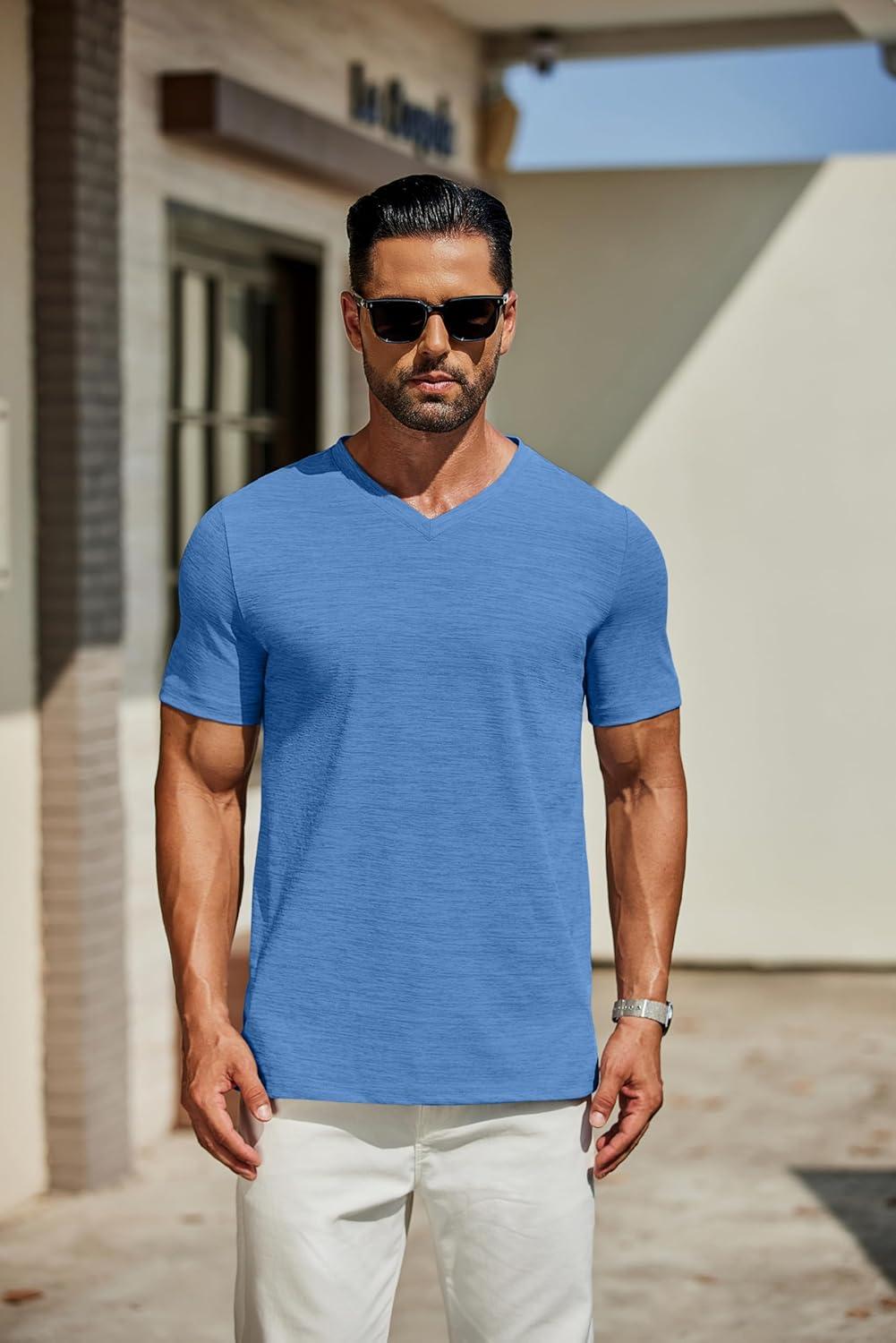 COOFANDY Men's T Shirts Short Sleeve Classic V Neck T-Shirt Casual Summer Basic Tee Shirt(Blue)