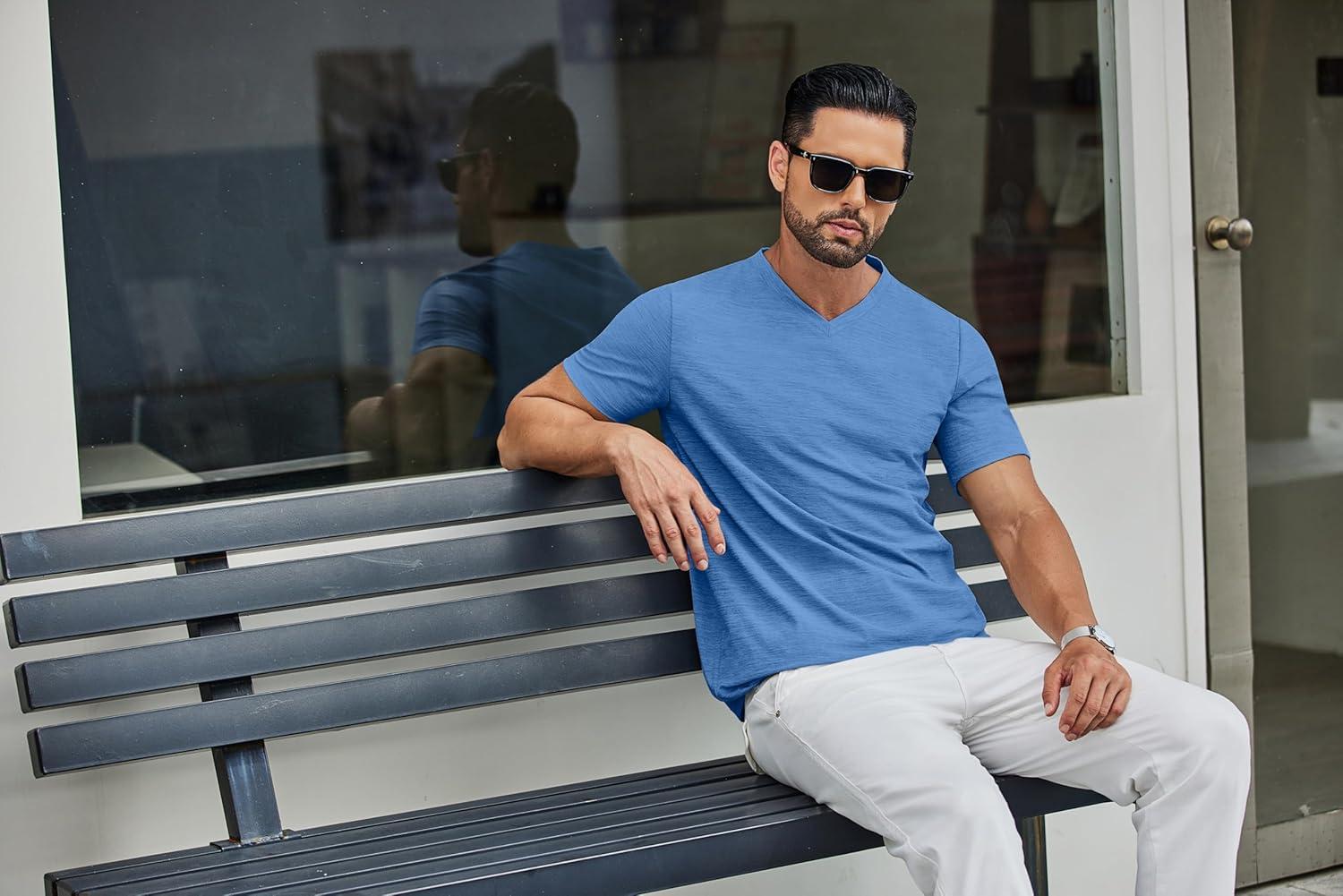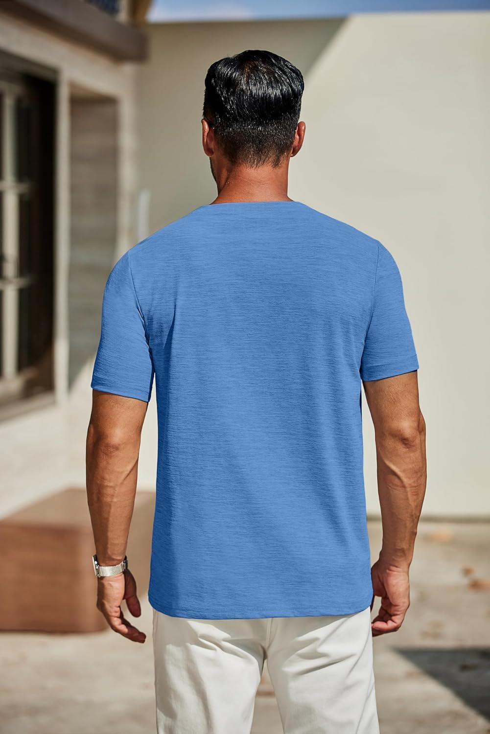 COOFANDY Men’s T Shirts Short Sleeve Classic V Neck T-Shirt Casual Summer Basic Tee Shirt(Blue)