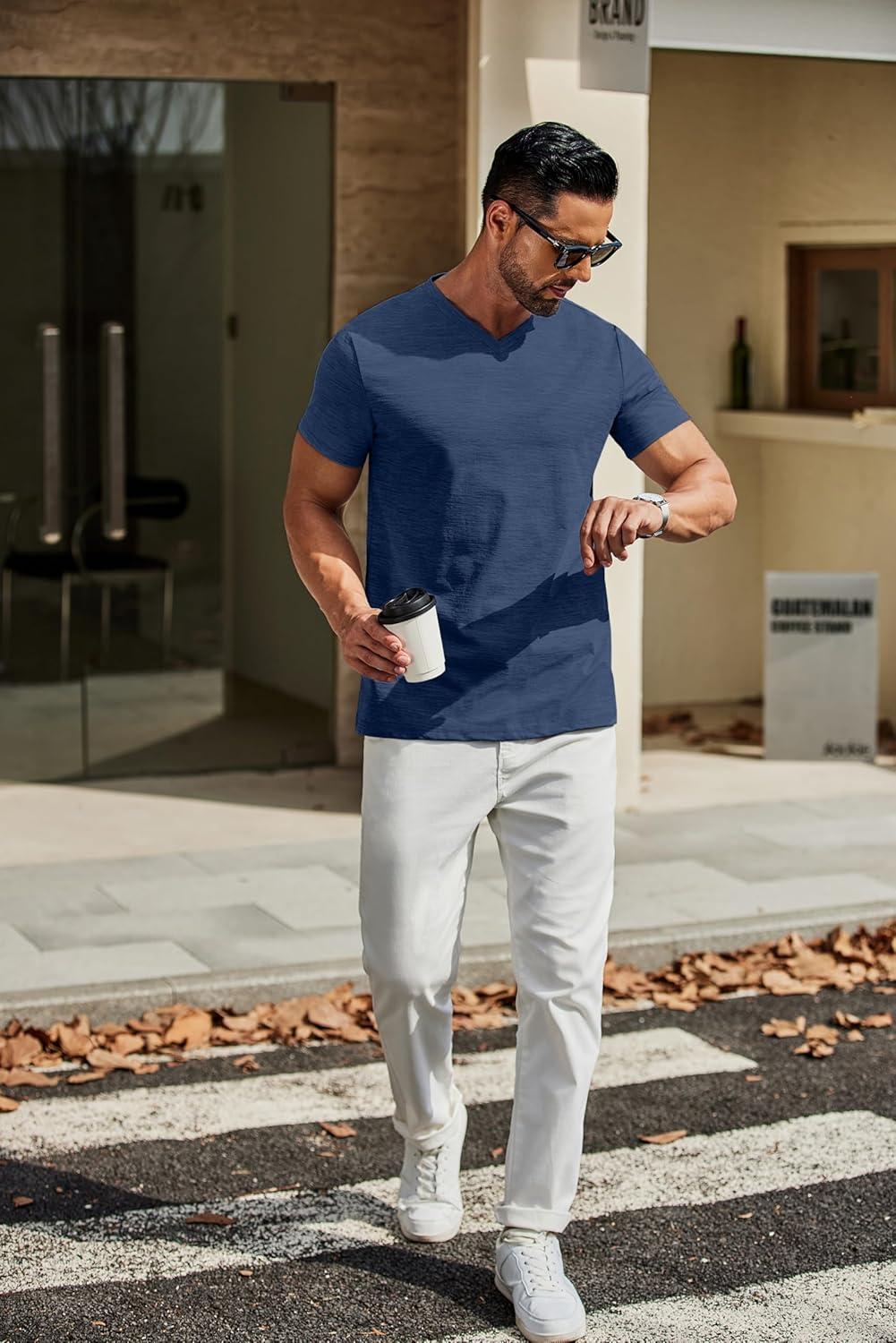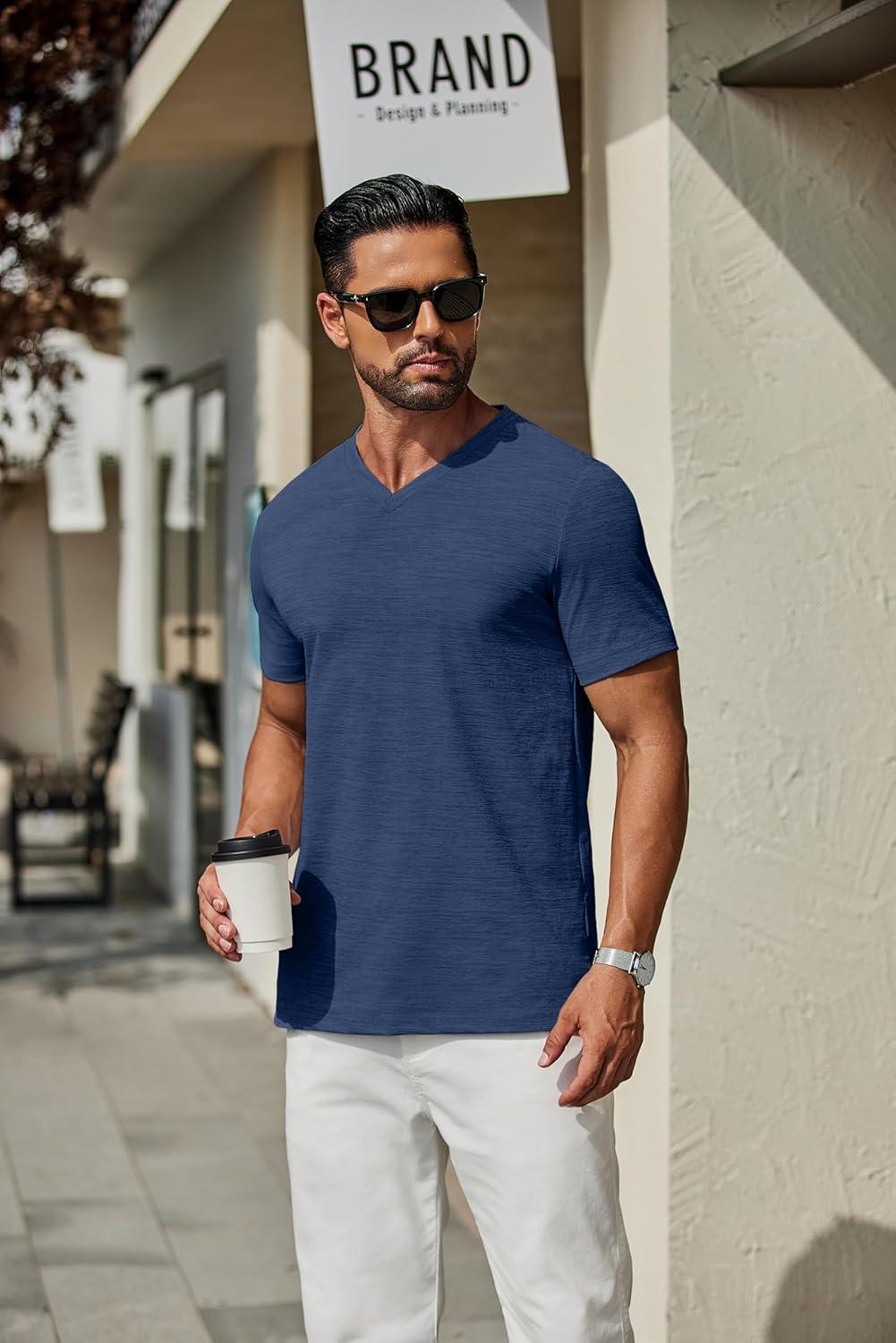 COOFANDY Men's T Shirts Short Sleeve Classic V Neck T-Shirt Casual Summer Basic Tee Shirt(Navy Blue)