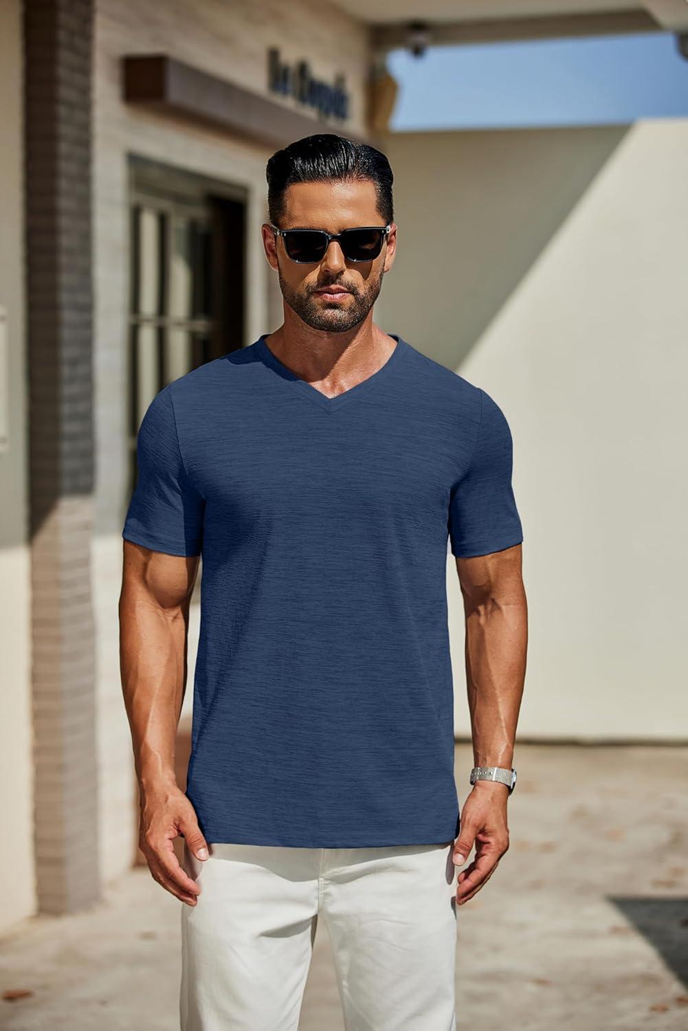 COOFANDY Men’s T Shirts Short Sleeve Classic V Neck T-Shirt Casual Summer Basic Tee Shirt(Navy Blue)