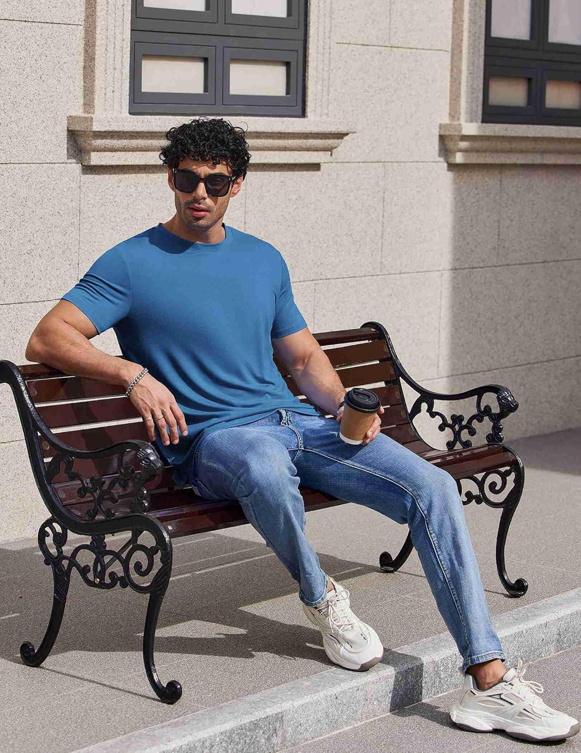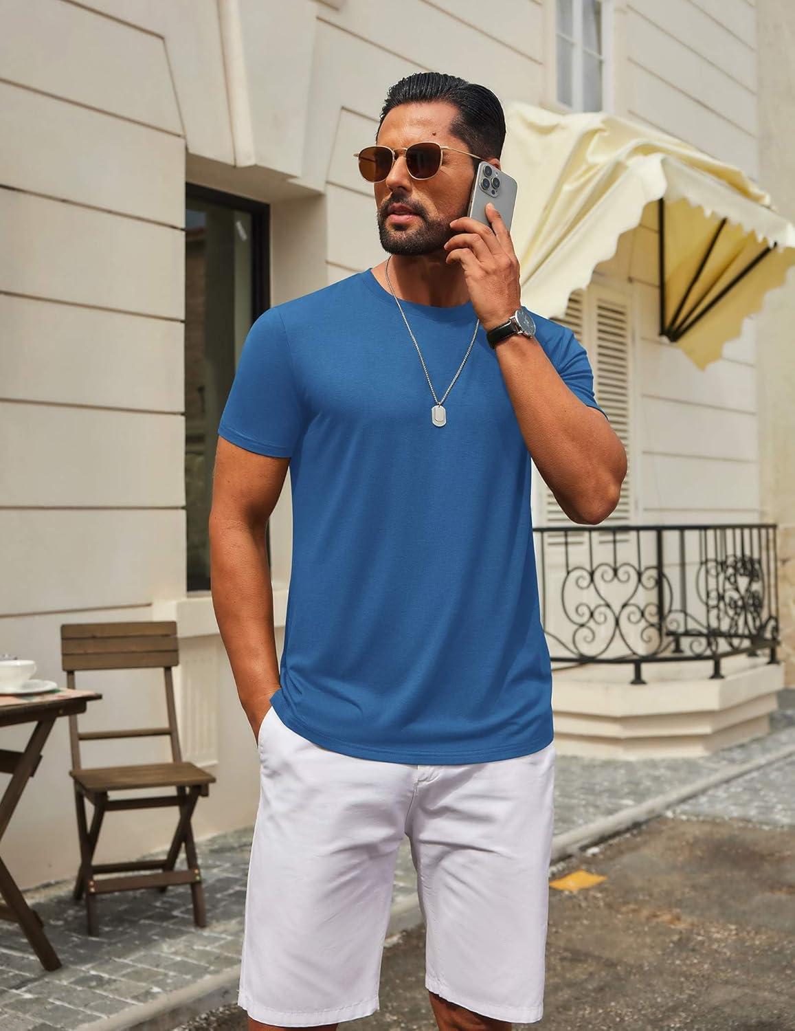 COOFANDY Men's T-Shirts Short Sleeve Crew Neck T Shirts Casual Classic Basic Tee Shirts(Denim Blue)