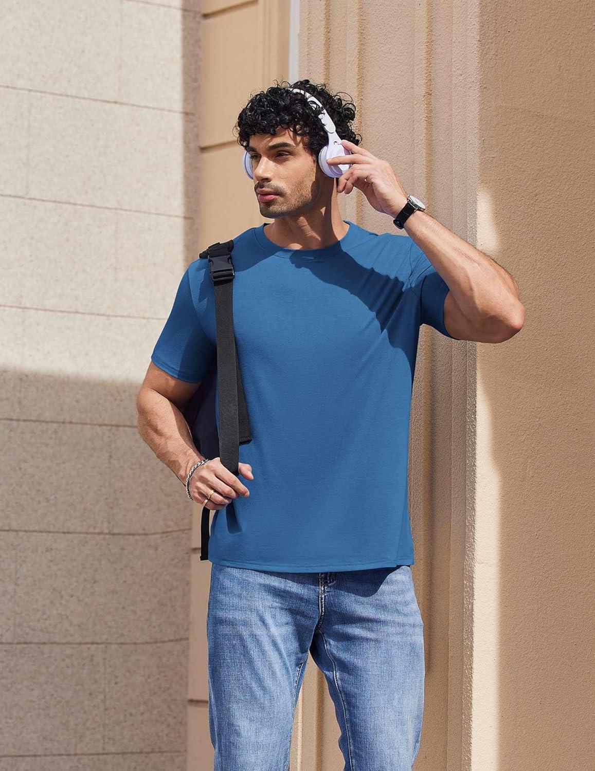 COOFANDY Men’s T-Shirts Short Sleeve Crew Neck T Shirts Casual Classic Basic Tee Shirts(Denim Blue)