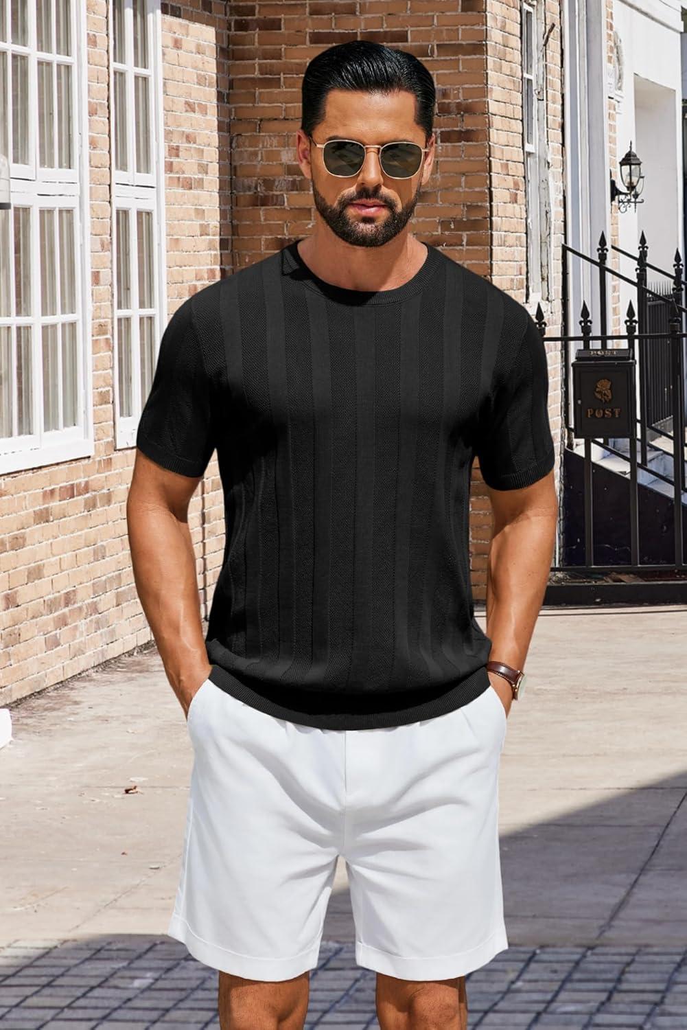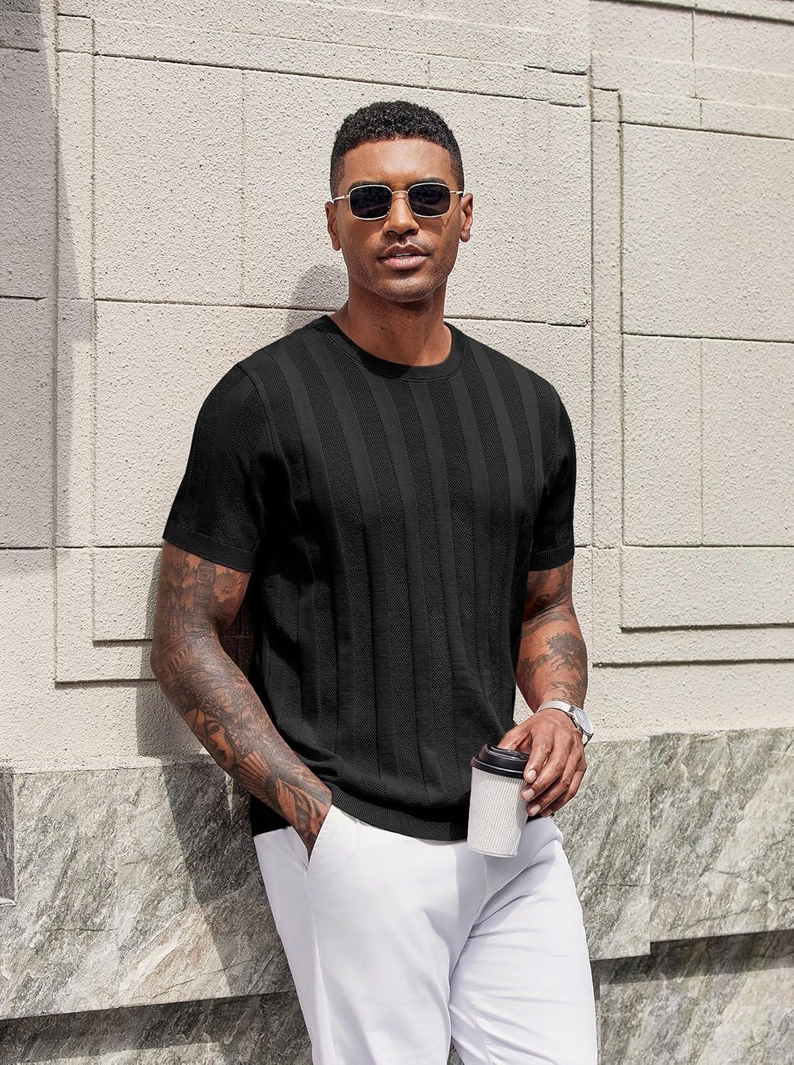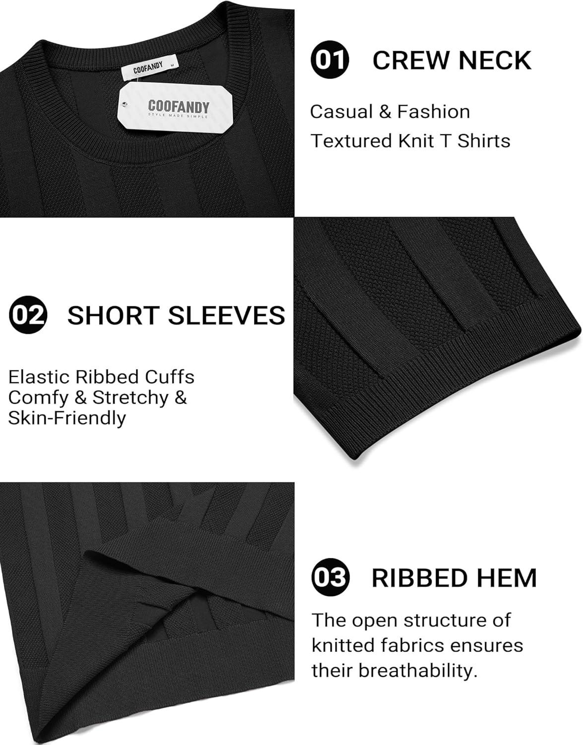 COOFANDY Mens T-Shirts Short Sleeve Knit Shirt Crew Neck Sweater Fashion Casual Textured Pullover Tees(01-black)