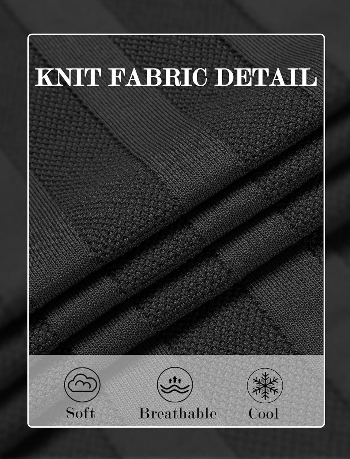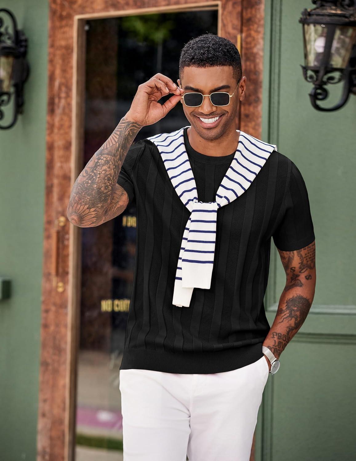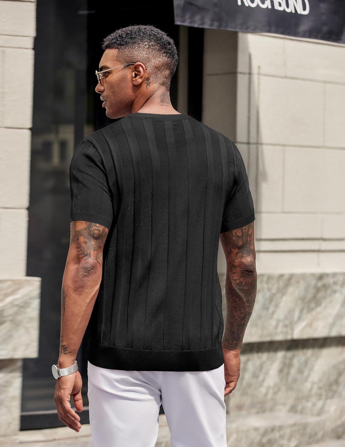 COOFANDY Mens T-Shirts Short Sleeve Knit Shirt Crew Neck Sweater Fashion Casual Textured Pullover Tees(01-black)