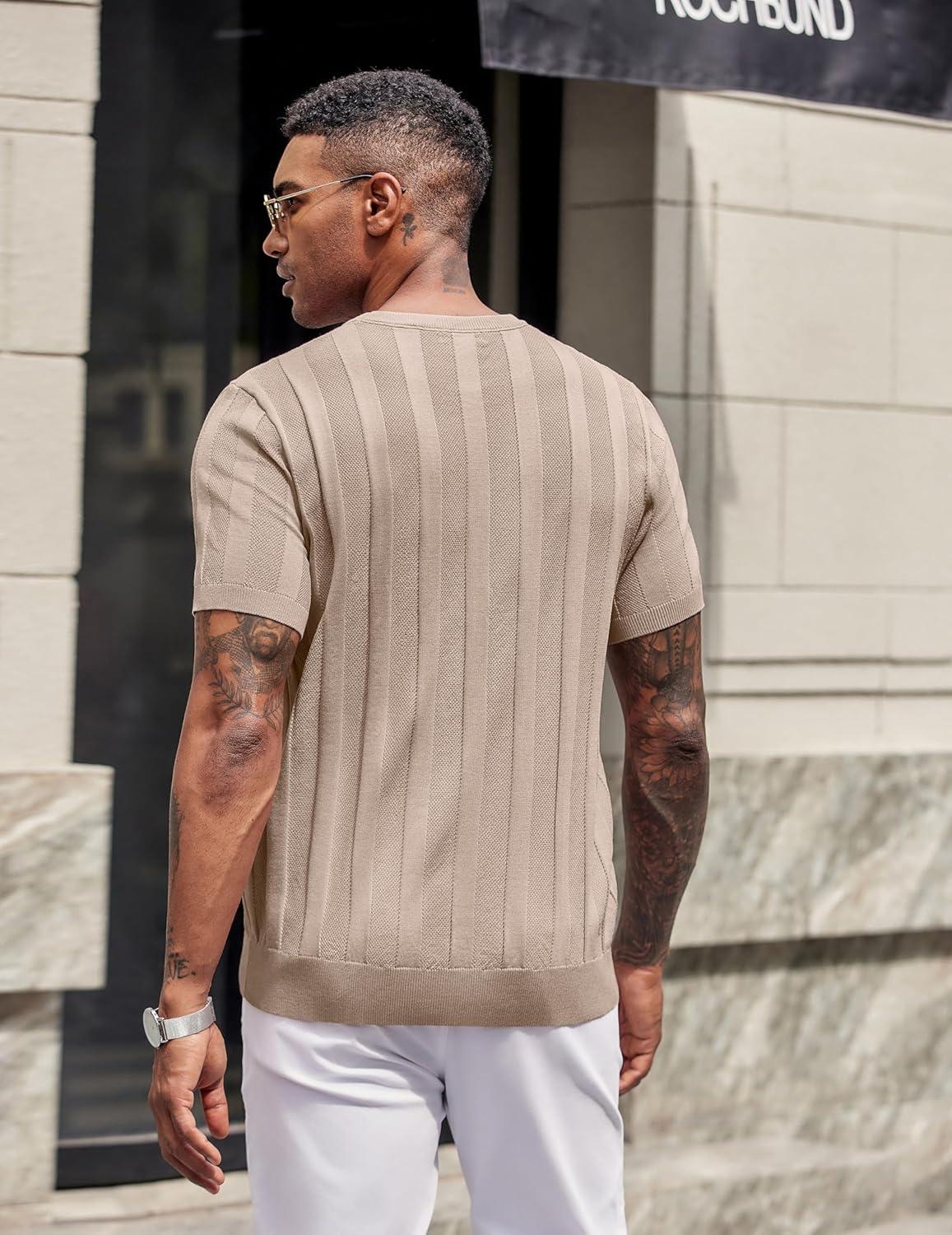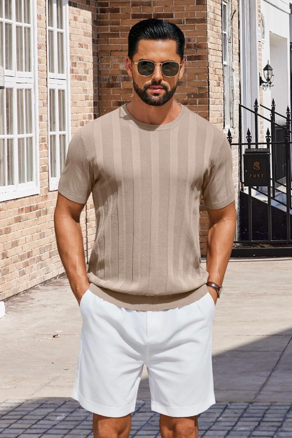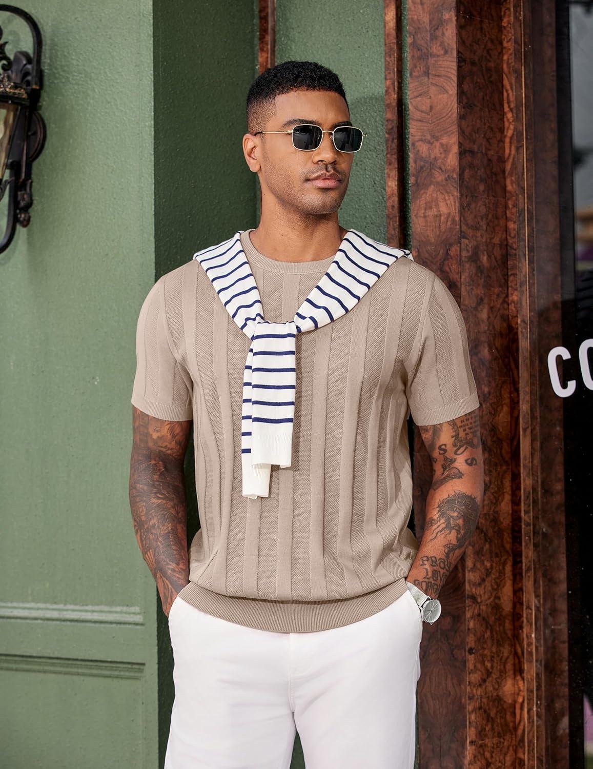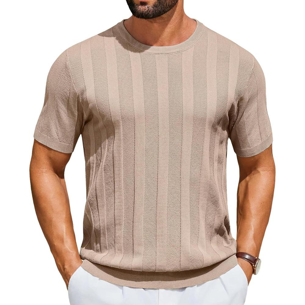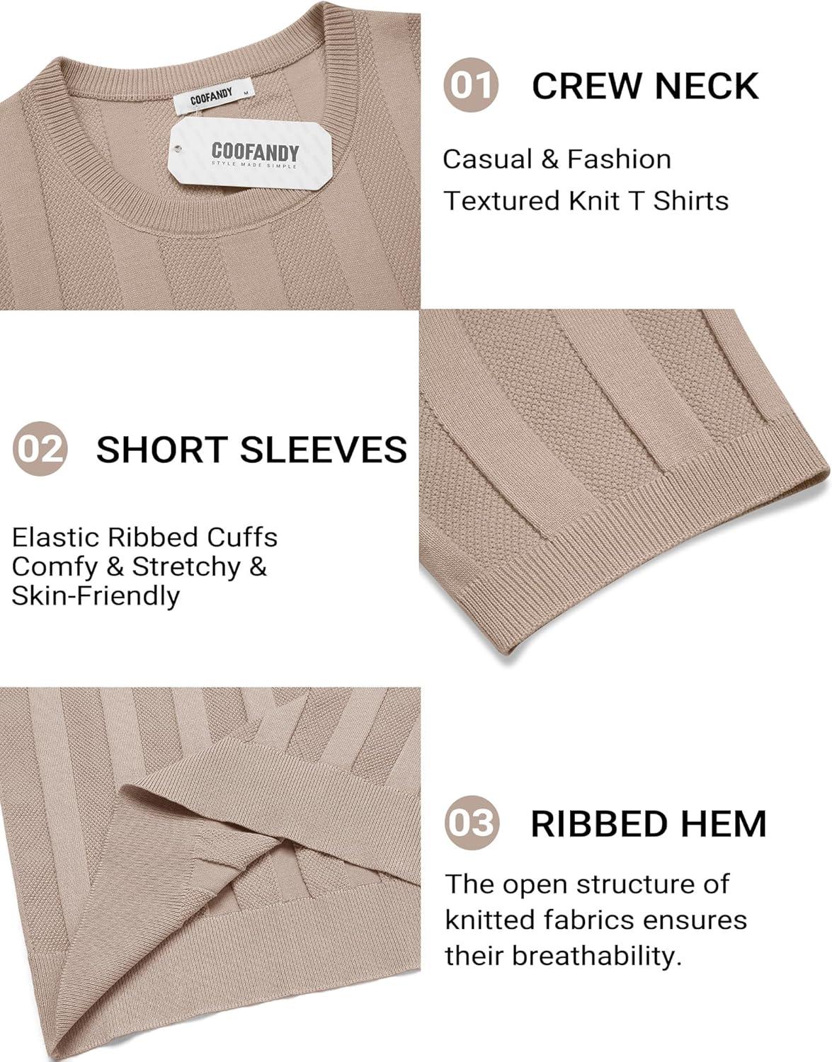COOFANDY Mens T-Shirts Short Sleeve Knit Shirt Crew Neck Sweater Fashion Casual Textured Pullover Tees(Khaki)