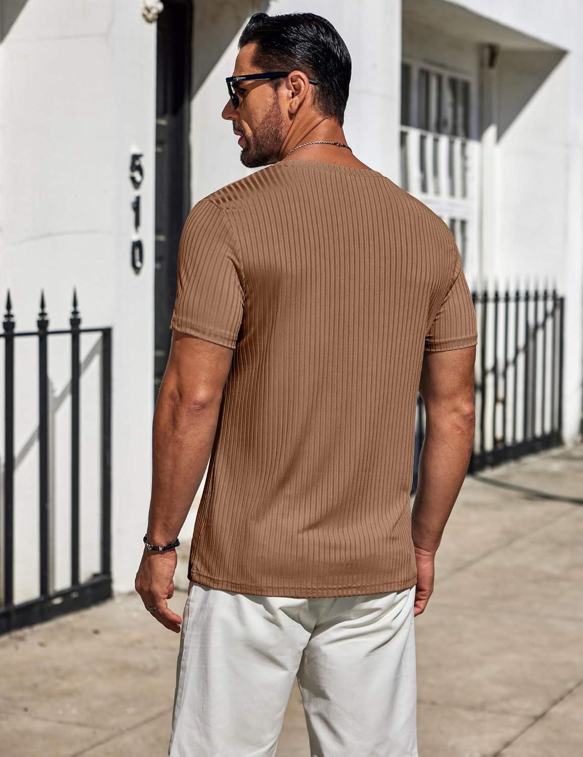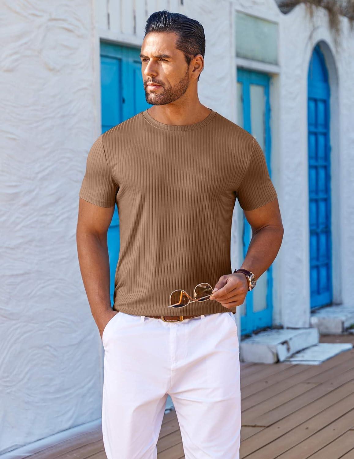 COOFANDY Mens T-Shirts Short Sleeve Plain Tshirts Casual Crew Neck Basic T Shirt Soft Cooling Fitted Stretch Tee Shirts(Brown)
