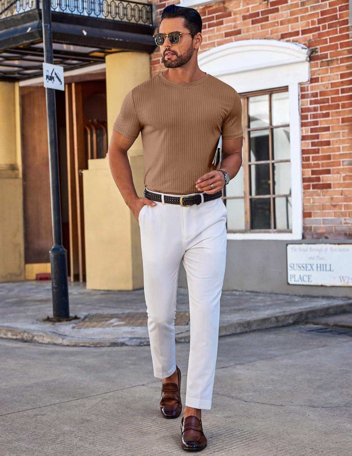 COOFANDY Mens T-Shirts Short Sleeve Plain Tshirts Casual Crew Neck Basic T Shirt Soft Cooling Fitted Stretch Tee Shirts(Khaki)