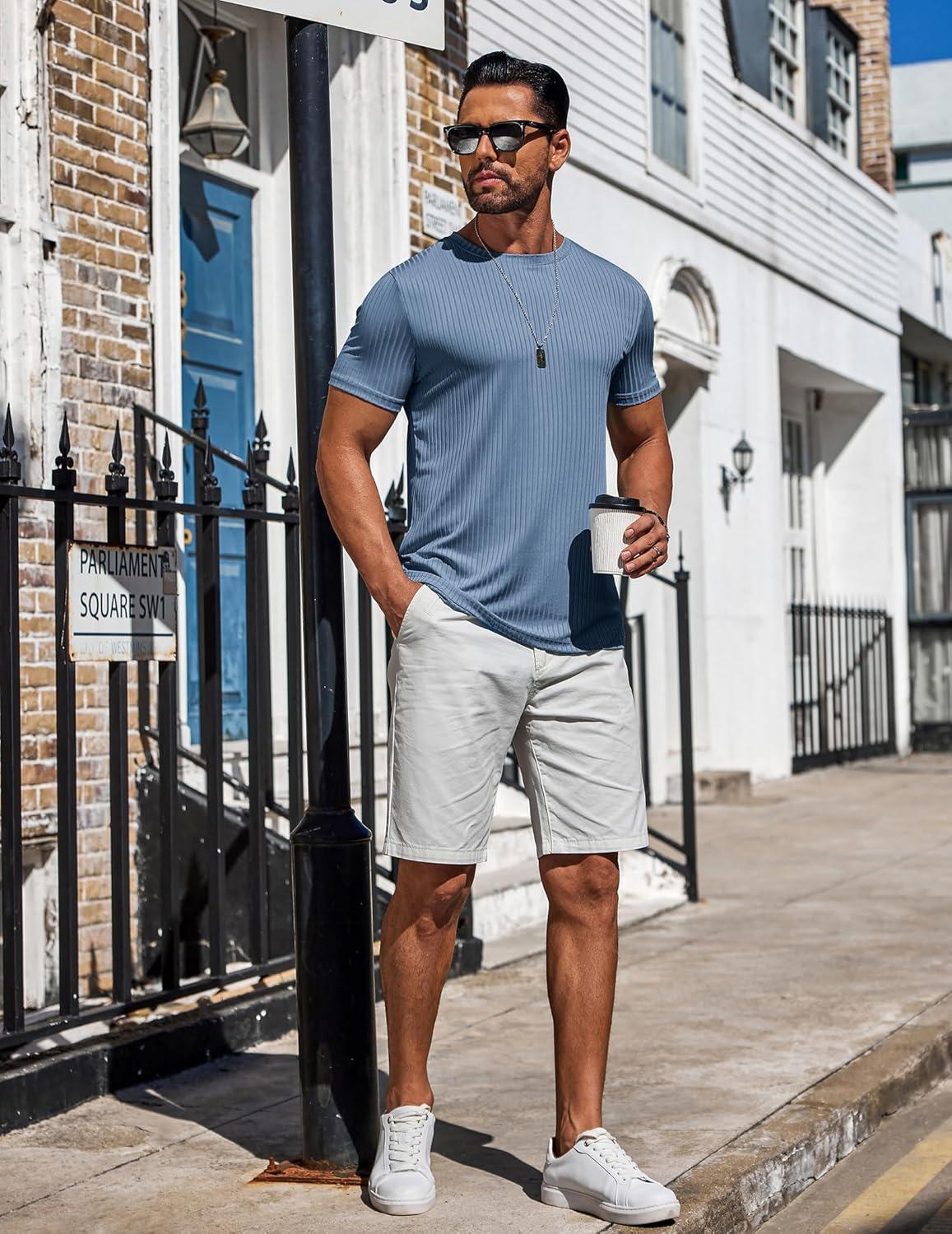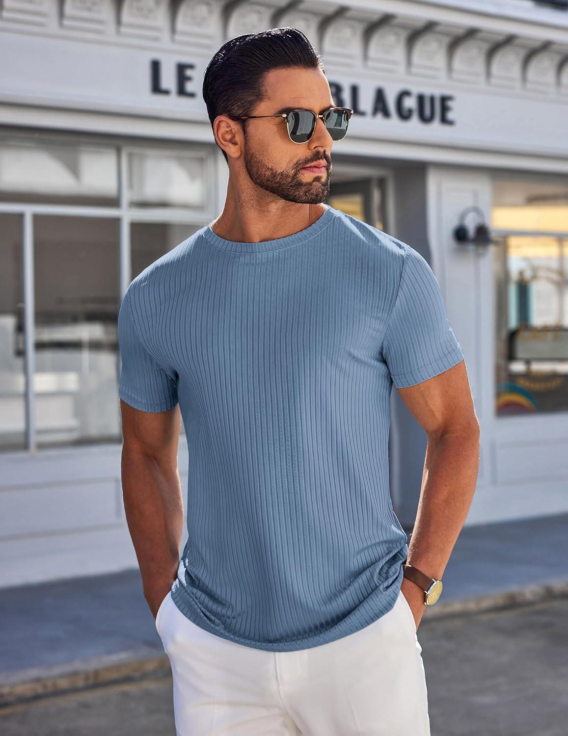 COOFANDY Mens T-Shirts Short Sleeve Plain Tshirts Casual Crew Neck Basic T Shirt Soft Cooling Fitted Stretch Tee Shirts(Deep Grey)