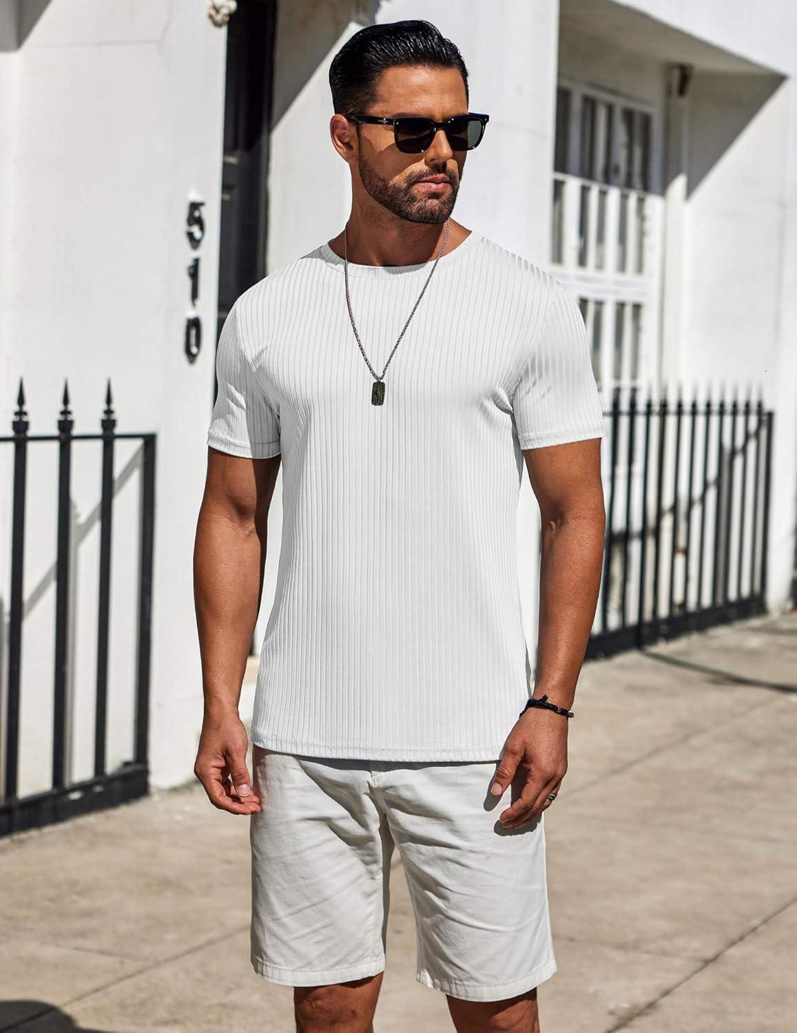imageCOOFANDY Mens TShirts Short Sleeve Plain Tshirts Casual Crew Neck Basic T Shirt Soft Cooling Fitted Stretch Tee ShirtsWhite