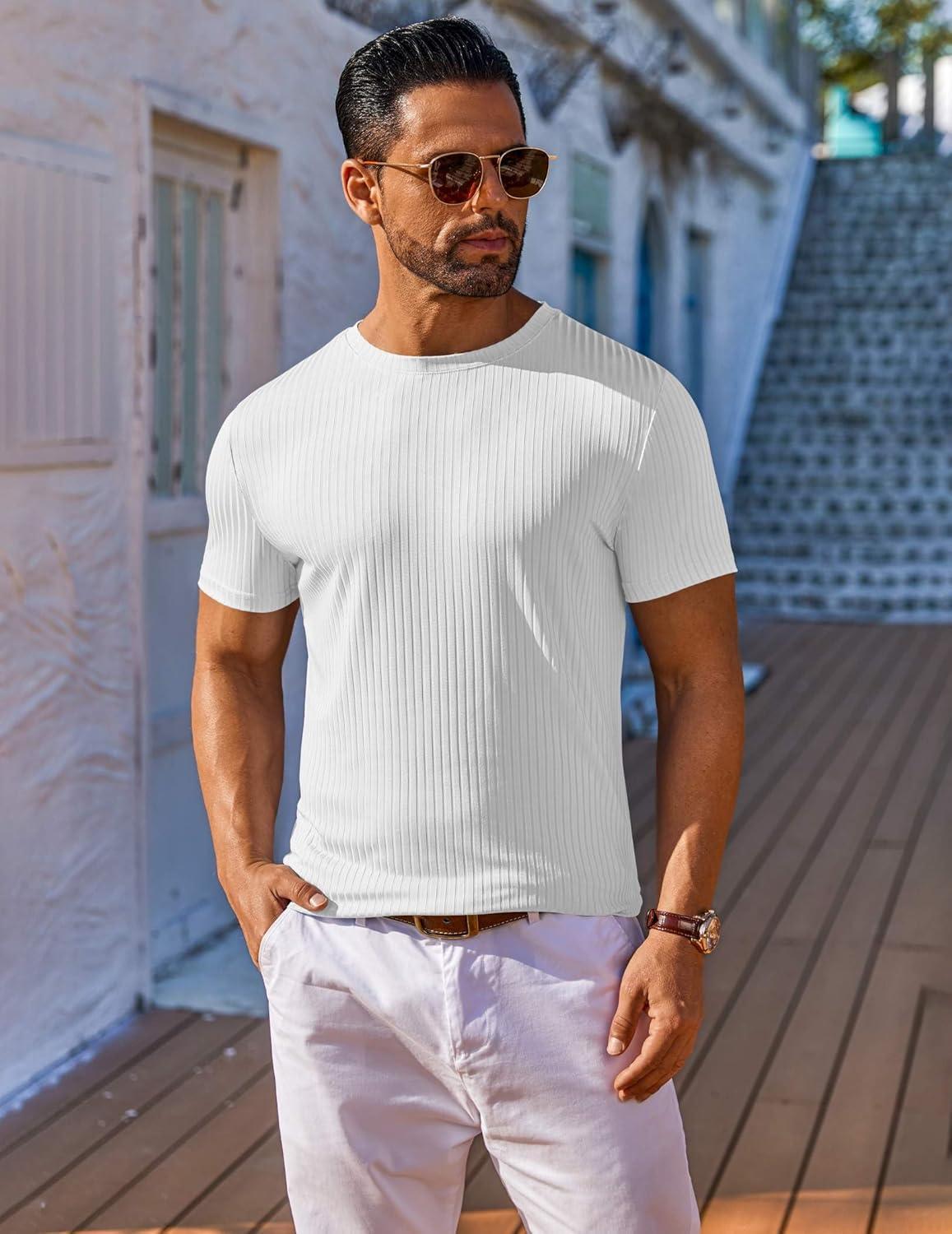 COOFANDY Mens T-Shirts Short Sleeve Plain Tshirts Casual Crew Neck Basic T Shirt Soft Cooling Fitted Stretch Tee Shirts(White)