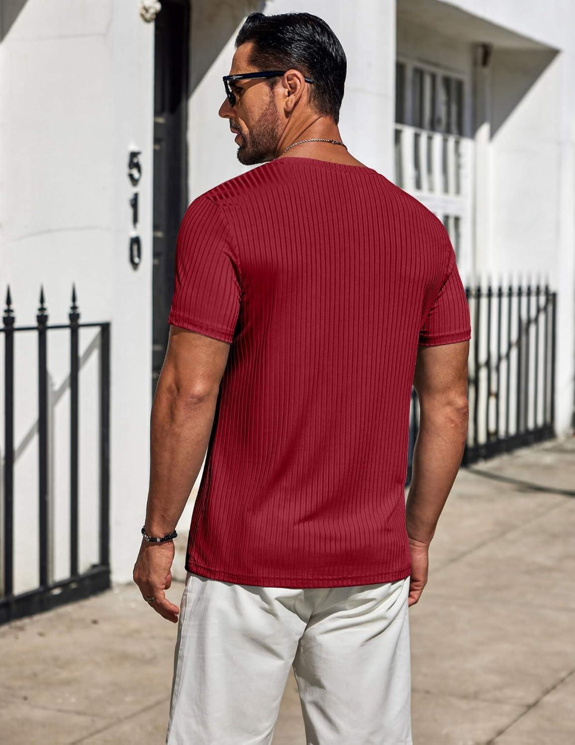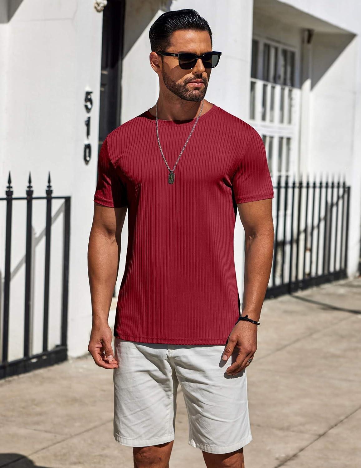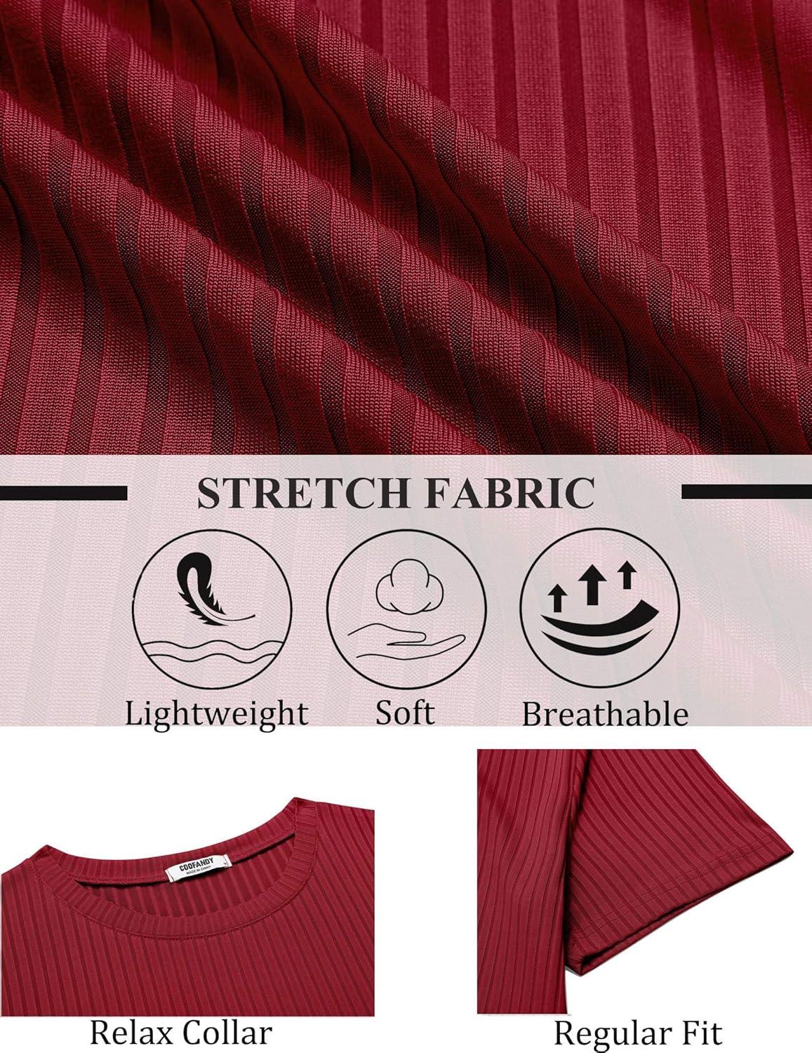 COOFANDY Mens T-Shirts Short Sleeve Plain Tshirts Casual Crew Neck Basic T Shirt Soft Cooling Fitted Stretch Tee Shirts(Wine Red)