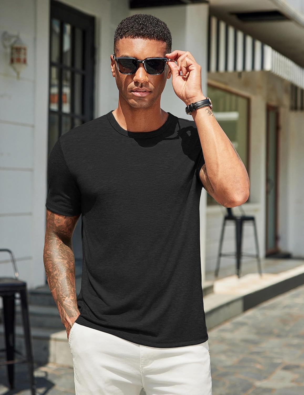 COOFANDY Men's T Shirts Short Sleeve Soft Crew Neck Lightweight Tee Shirts Casual Summer Basic Tops(A-black)