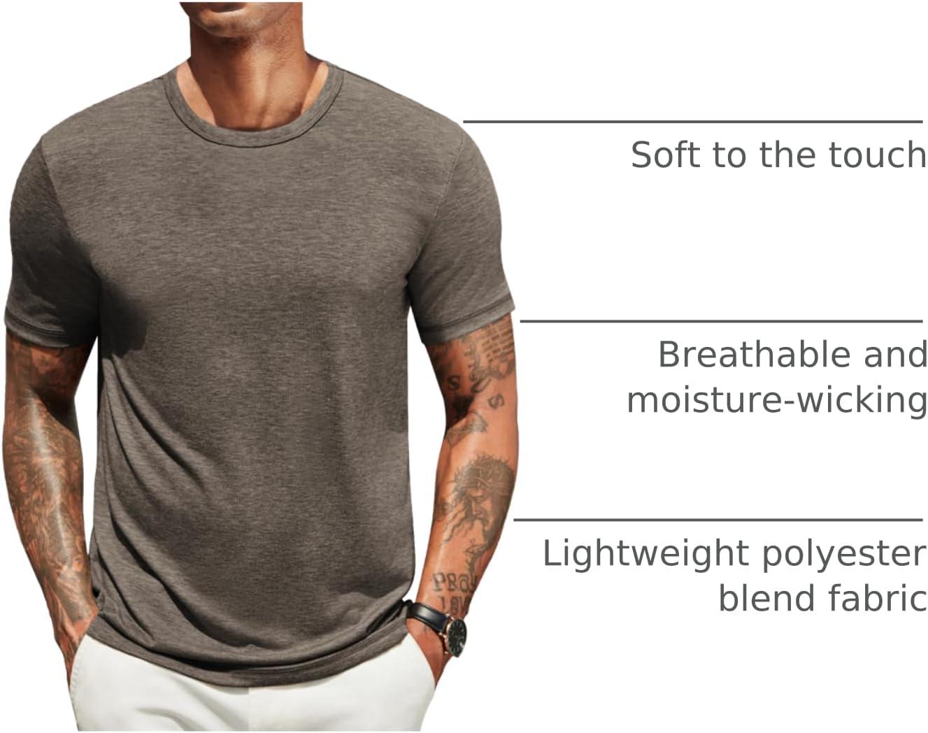 COOFANDY Men’s T Shirts Short Sleeve Soft Crew Neck Lightweight Tee Shirts Casual Summer Basic Tops(Brown)