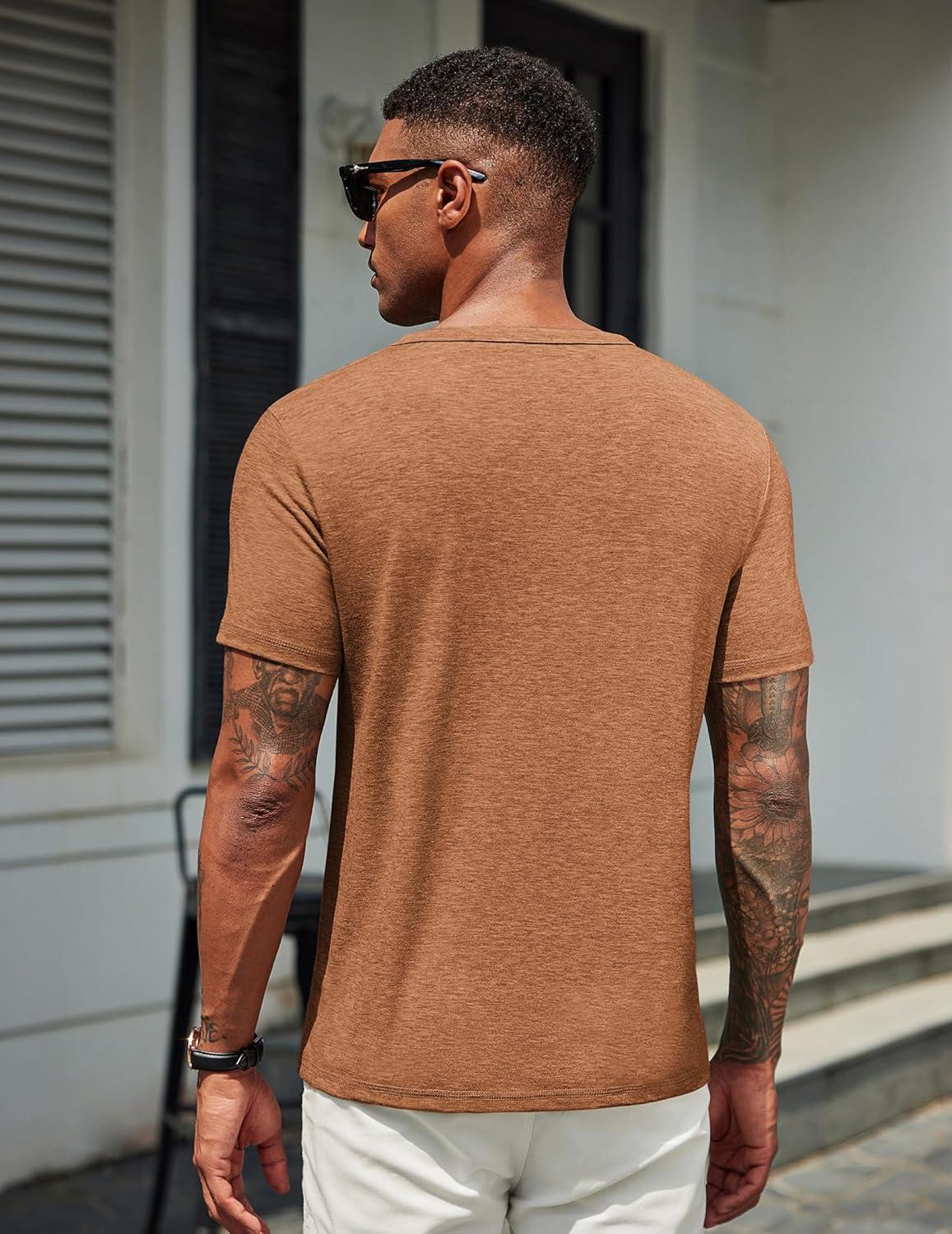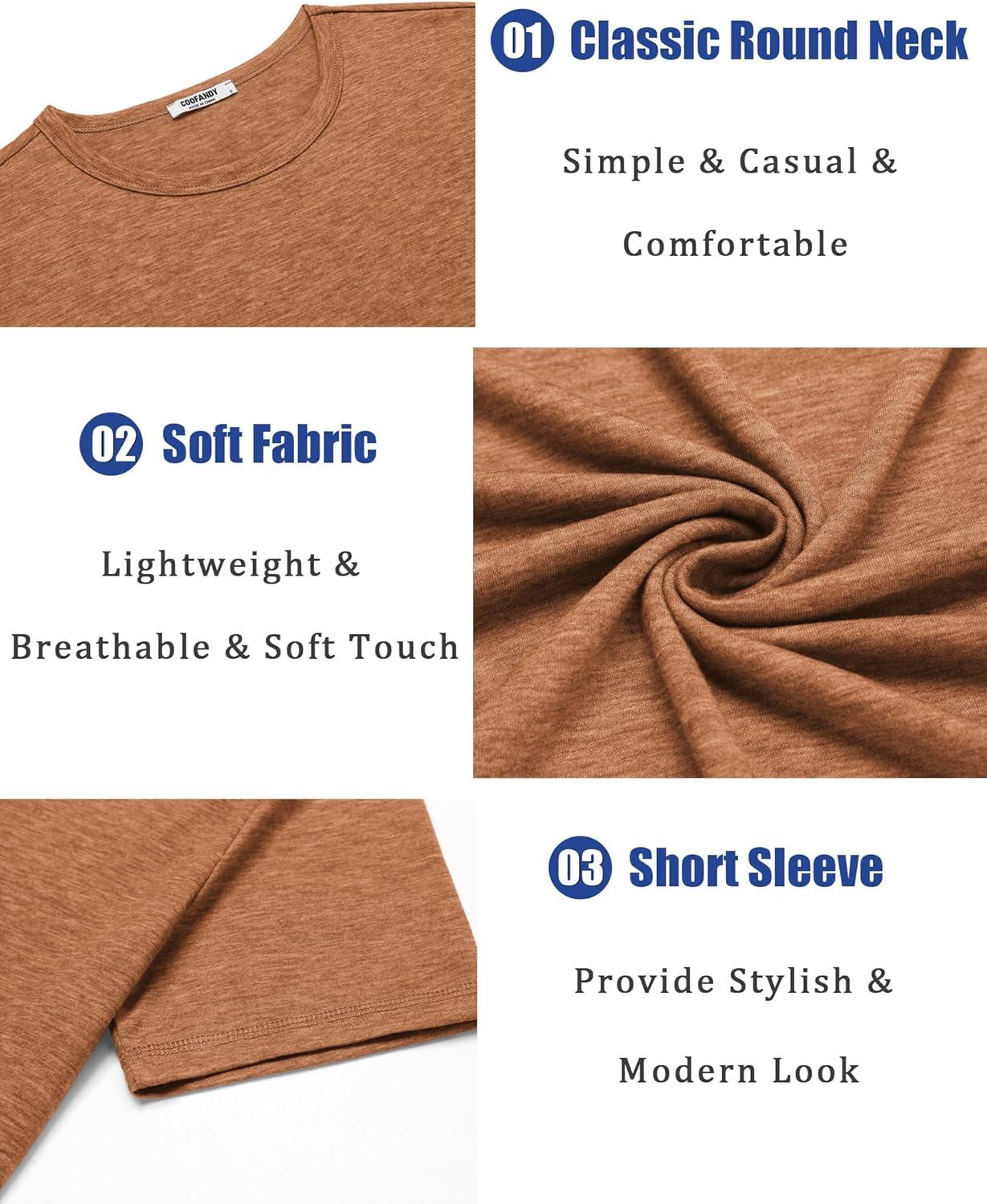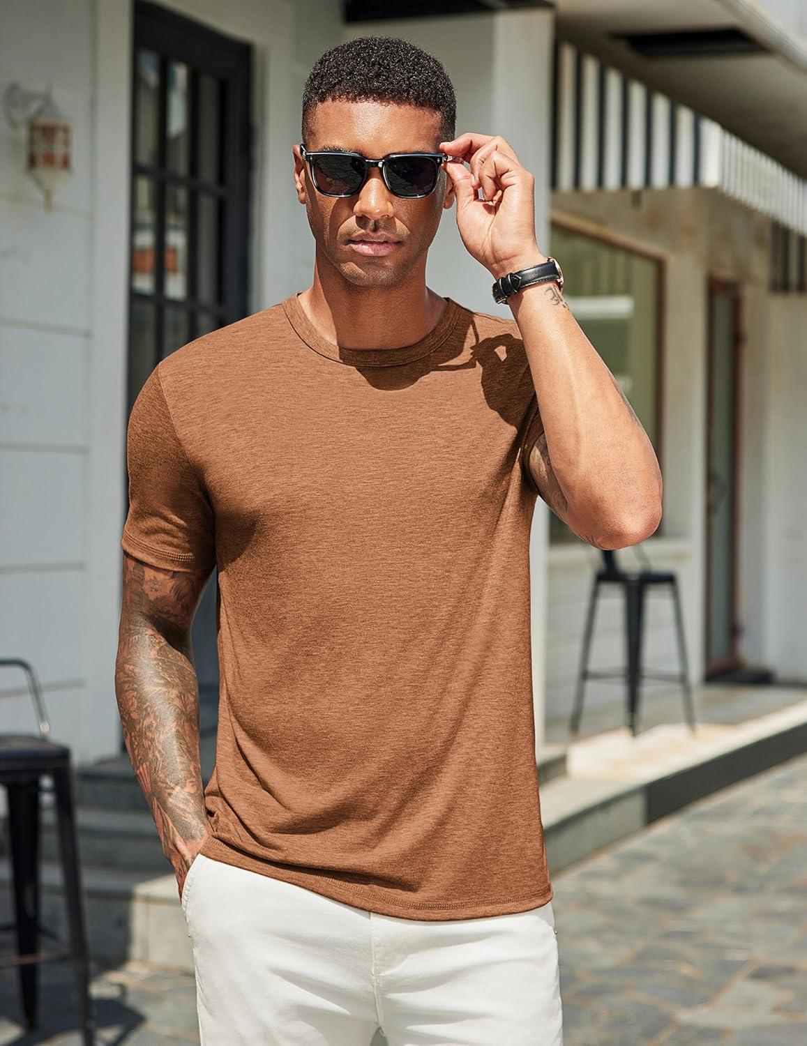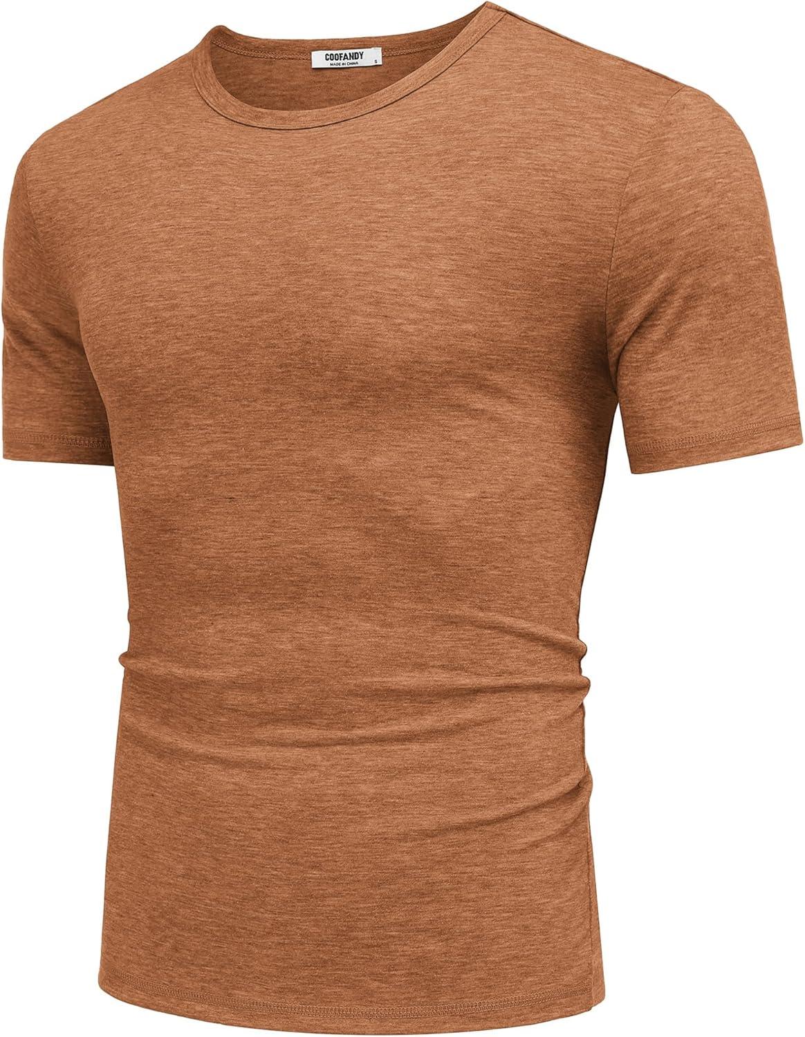 COOFANDY Men's T Shirts Short Sleeve Soft Crew Neck Lightweight Tee Shirts Casual Summer Basic Tops(Caramel)