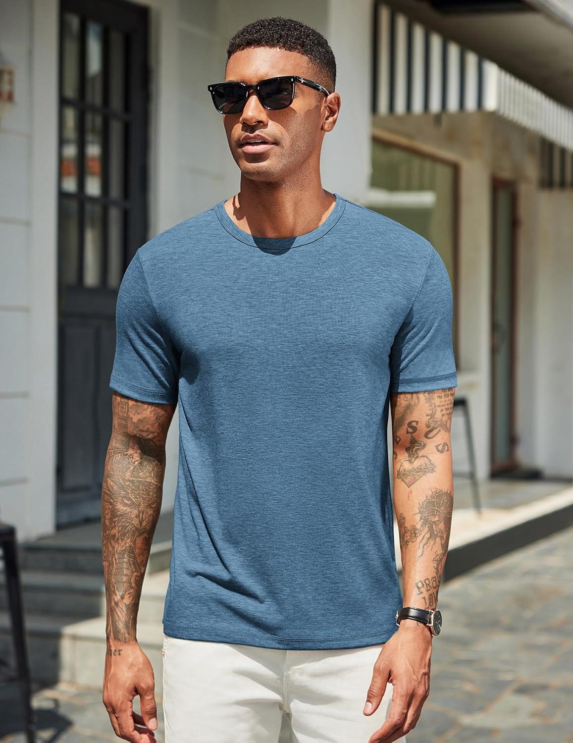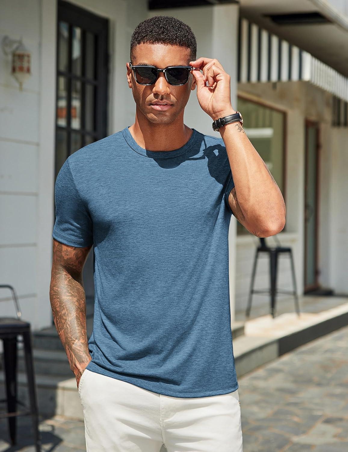 COOFANDY Men's T Shirts Short Sleeve Soft Crew Neck Lightweight Tee Shirts Casual Summer Basic Tops(Dark Blue)