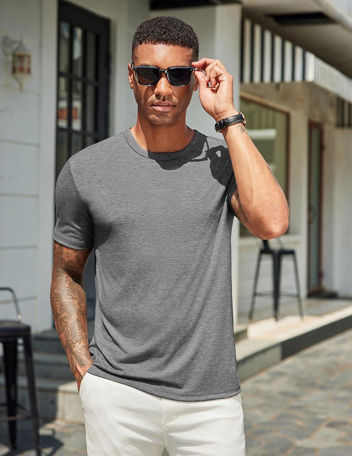 COOFANDY Men's T Shirts Short Sleeve Soft Crew Neck Lightweight Tee Shirts Casual Summer Basic Tops(W- Black/Grey -2 Pack)