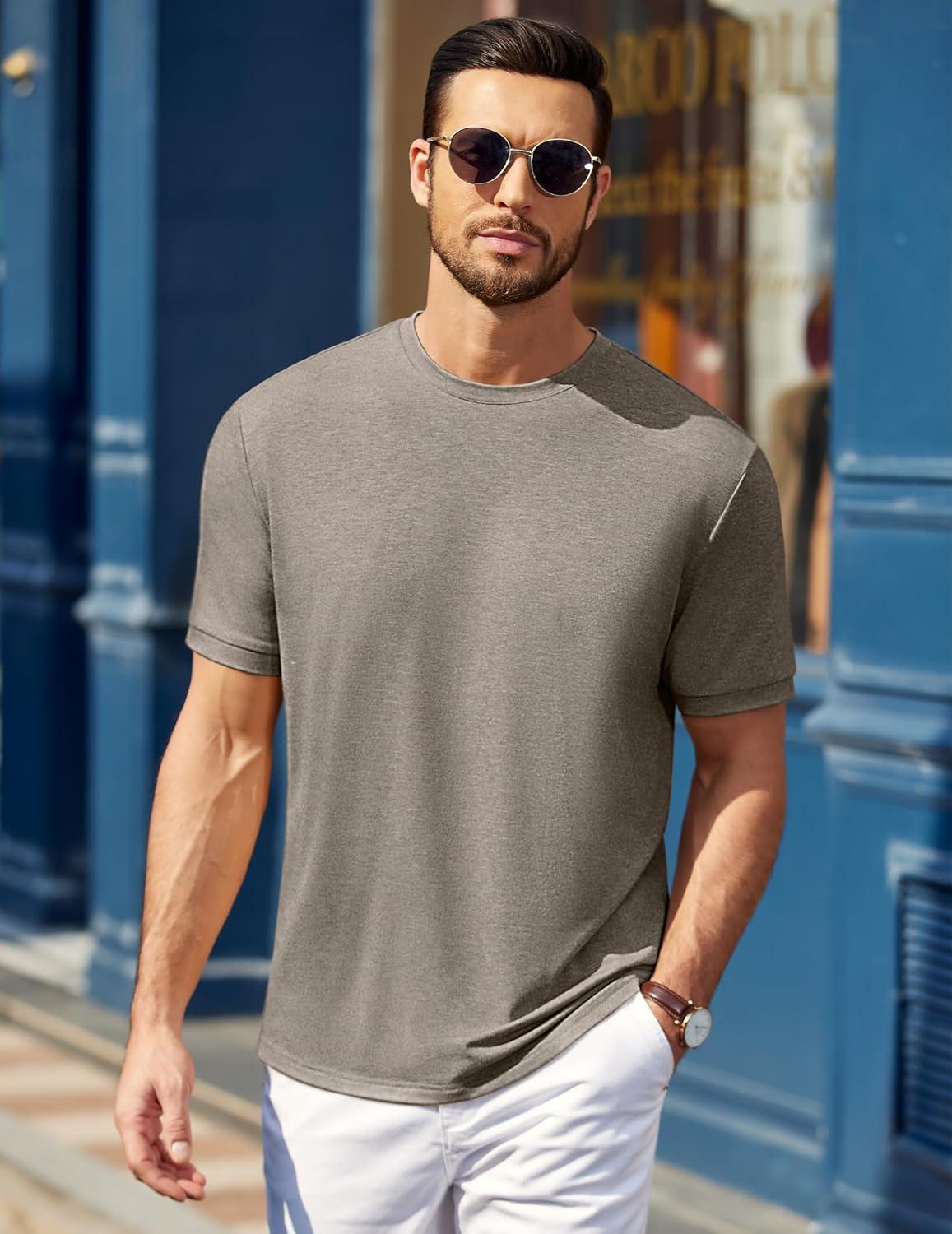 COOFANDY Mens T-Shirts Summer Crew Neck Casual T Shirts Plain Short Sleeve Shirts Basic Tees(Dark Gray)