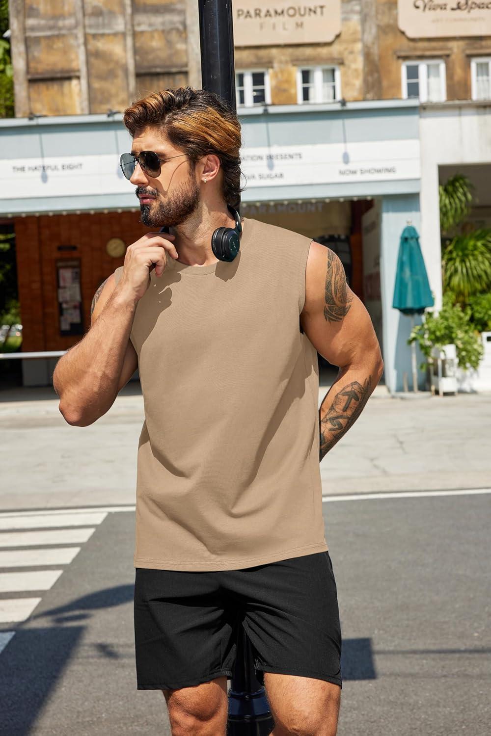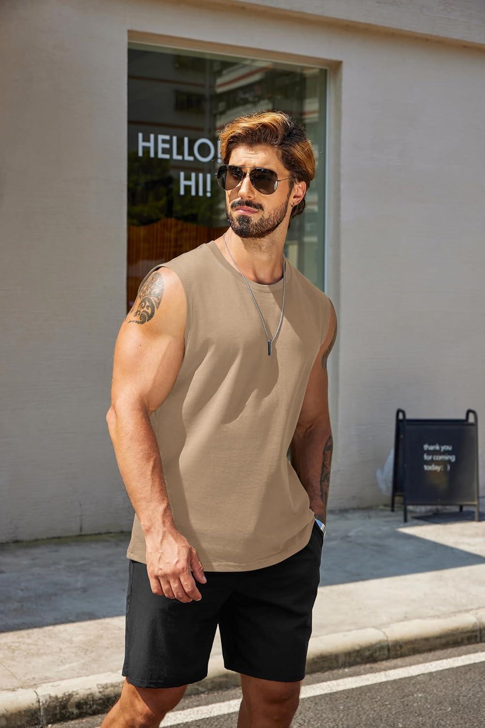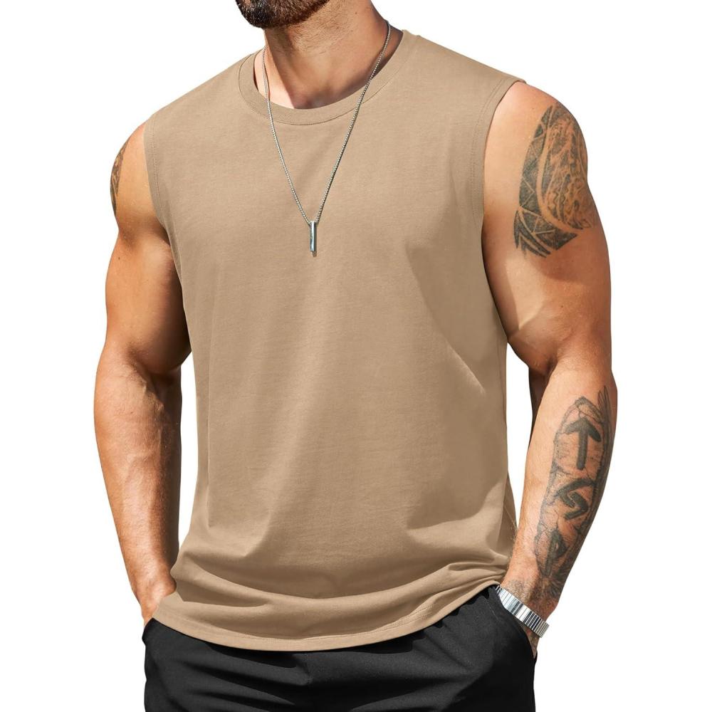 COOFANDY Men's Tank Top Cotton Workout Sleeveless Muscle T Shirts Casual Summer Tank Shirts(Khaki(1 Pcs))