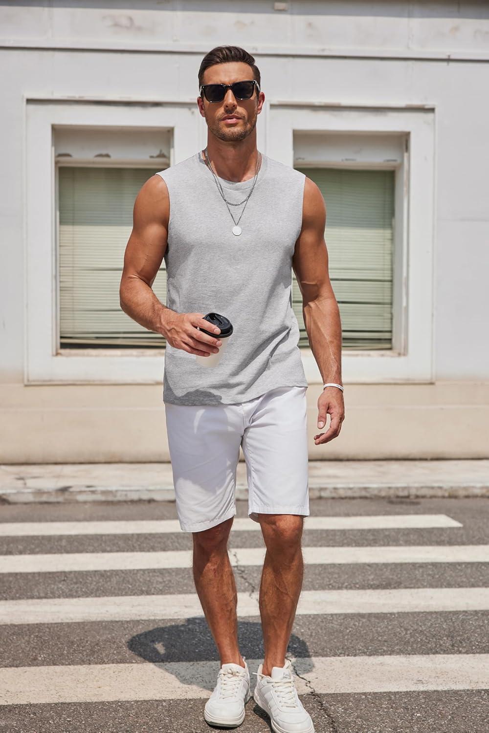 COOFANDY Men's Tank Top Cotton Workout Sleeveless Muscle T Shirts Casual Summer Tank Shirts(Light Grey(1 Pcs))