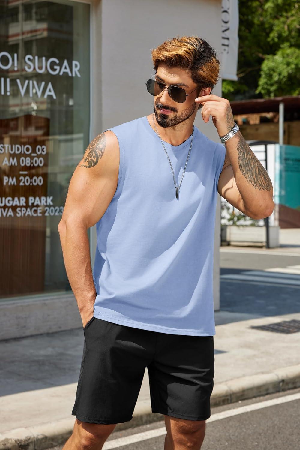 COOFANDY Men’s Tank Top Cotton Workout Sleeveless Muscle T Shirts Casual Summer Tank Shirts(Light Blue(1 Pcs))