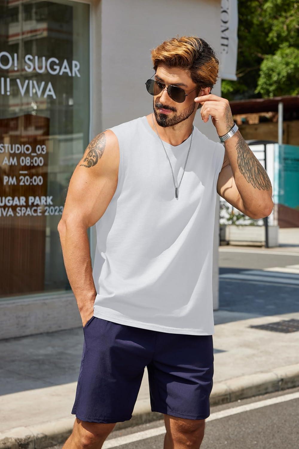 COOFANDY Men's Tank Top Cotton Workout Sleeveless Muscle T Shirts Casual Summer Tank Shirts(White(1 Pcs))