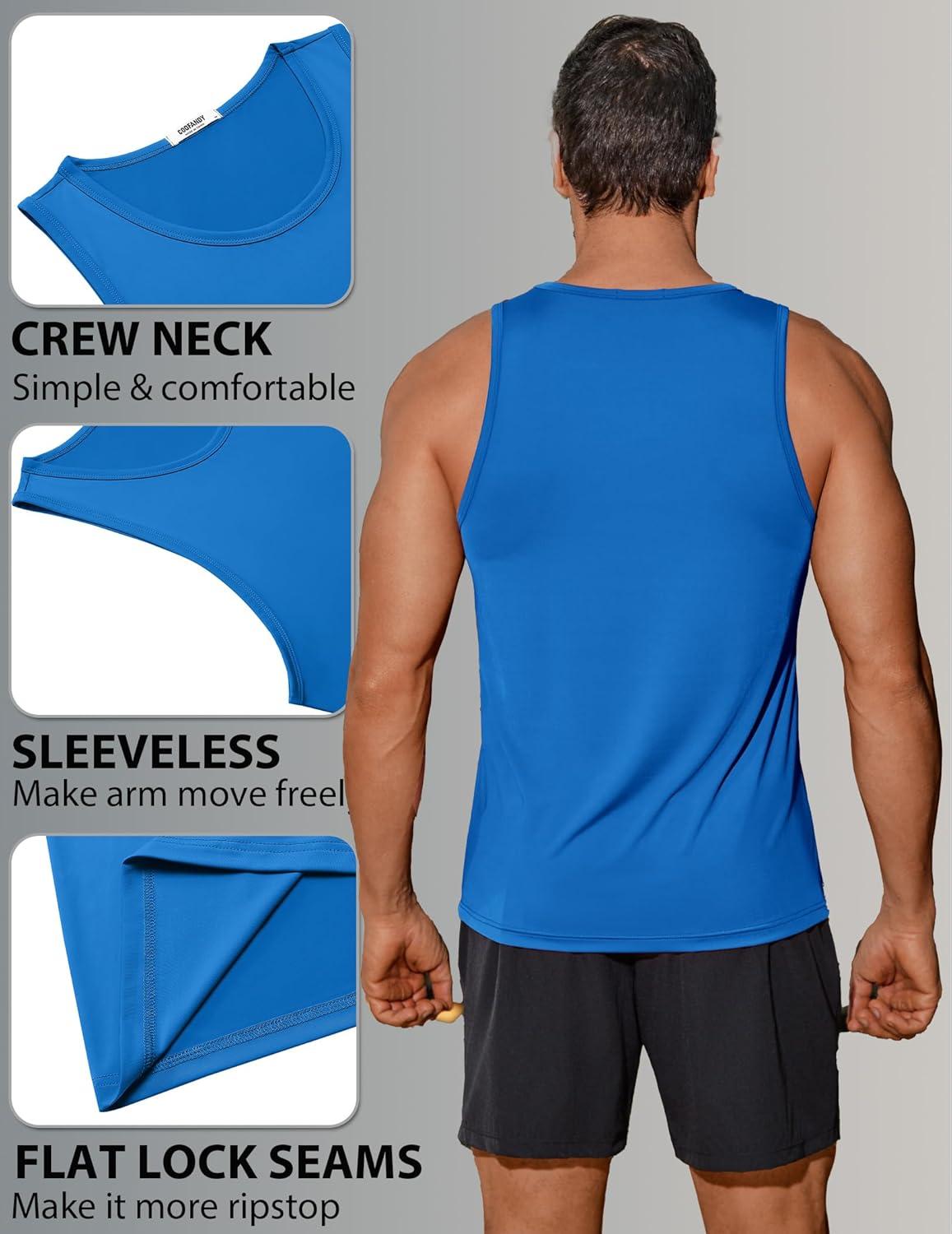 COOFANDY Mens Tank Top UPF 50+ Quick Dry Sleeveless Shirts Summer Workout Muscle T Shirt Cool Swim Beach Top(Navy/Blue)