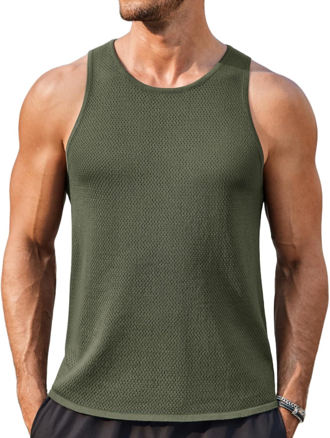 COOFANDY Mens Tank Tops Summer Beach Sleeveless Muscle Shirts Casual Knit Tanks Workout Gym Tee(Army Green)