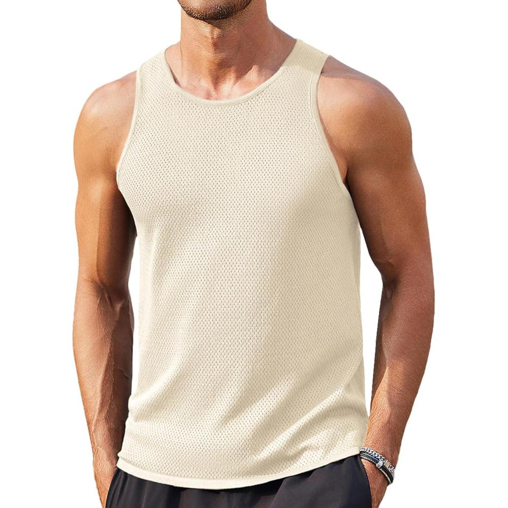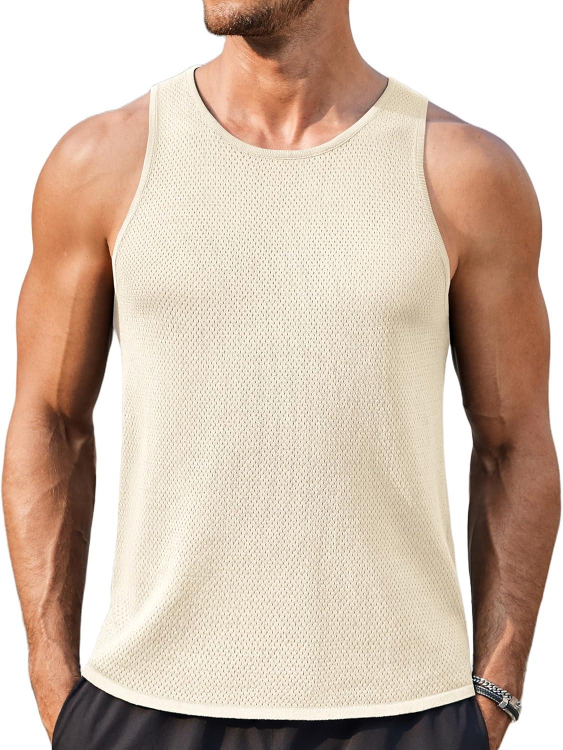 COOFANDY Mens Tank Tops Summer Beach Sleeveless Muscle Shirts Casual Knit Tanks Workout Gym Tee(Beige)