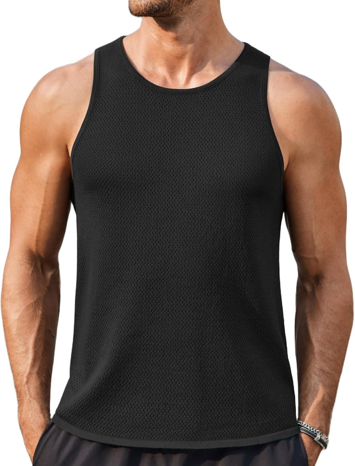 COOFANDY Mens Tank Tops Summer Beach Sleeveless Muscle Shirts Casual Knit Tanks Workout Gym Tee(Black)