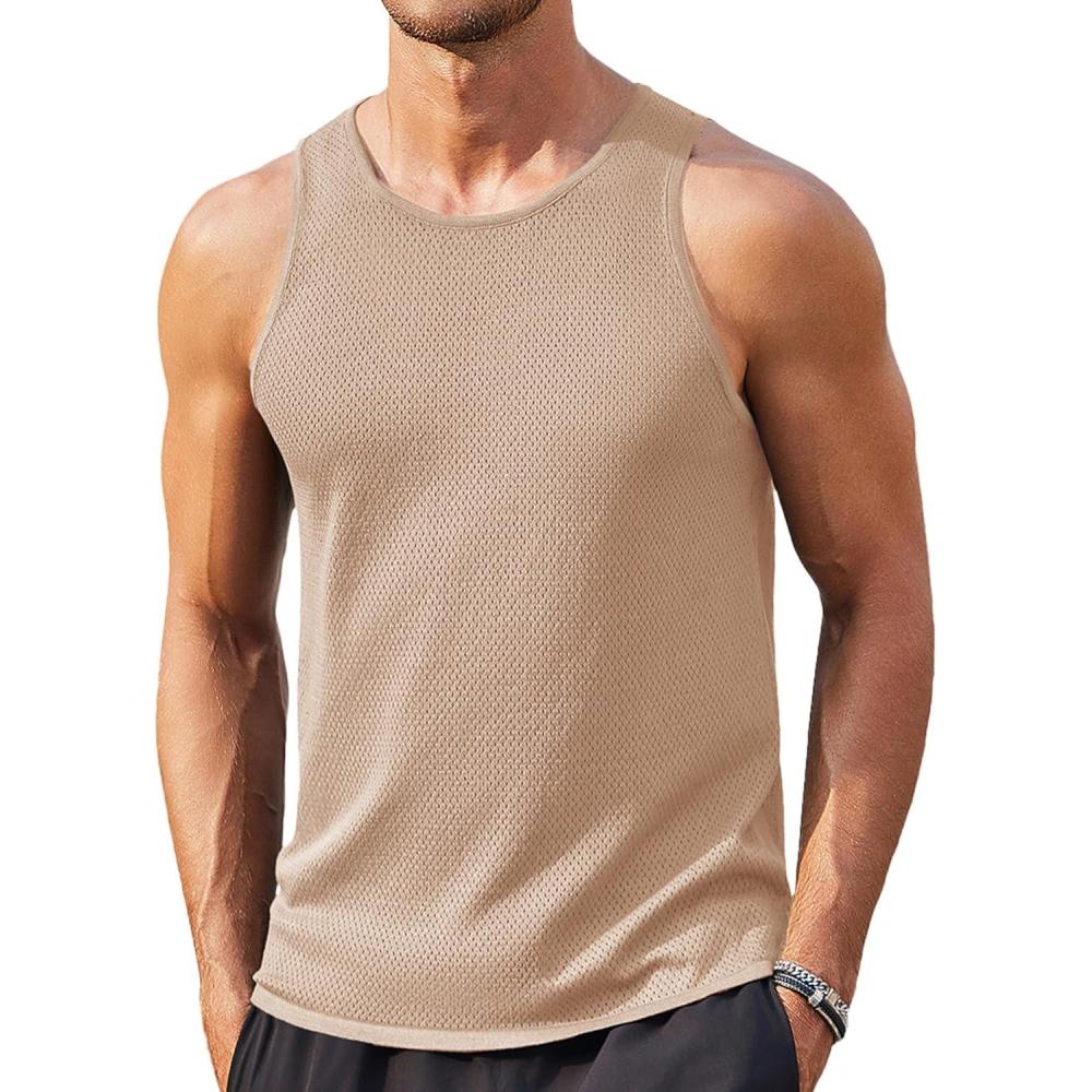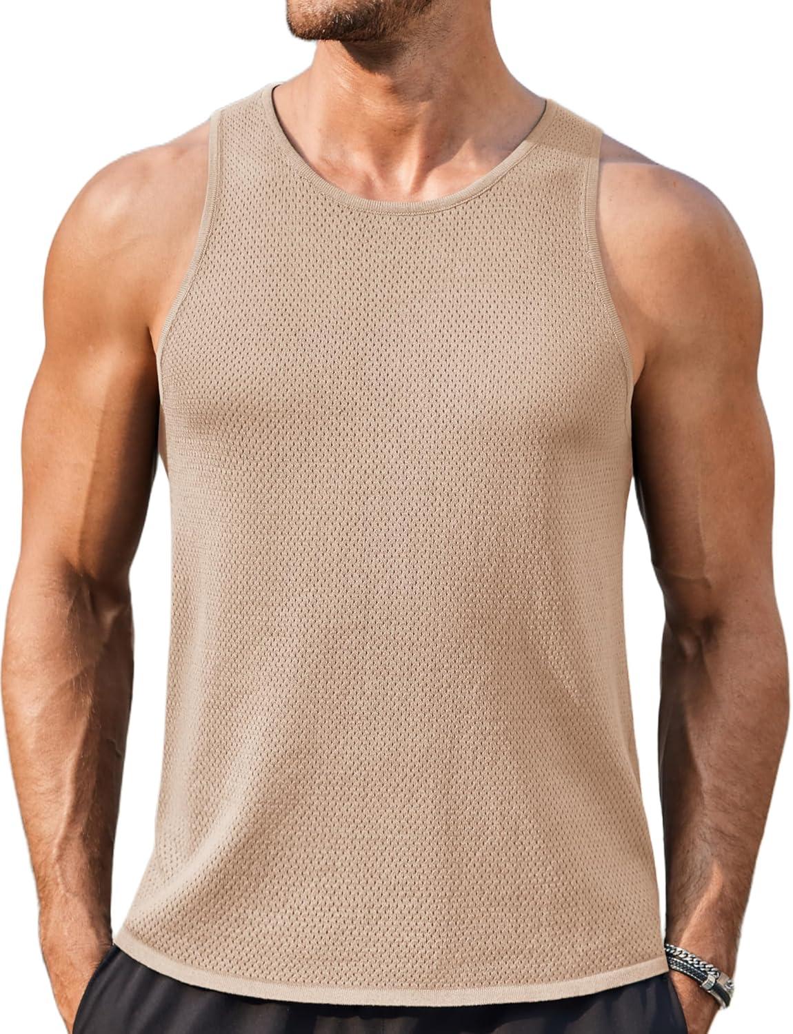 COOFANDY Mens Tank Tops Summer Beach Sleeveless Muscle Shirts Casual Knit Tanks Workout Gym Tee(Khaki)