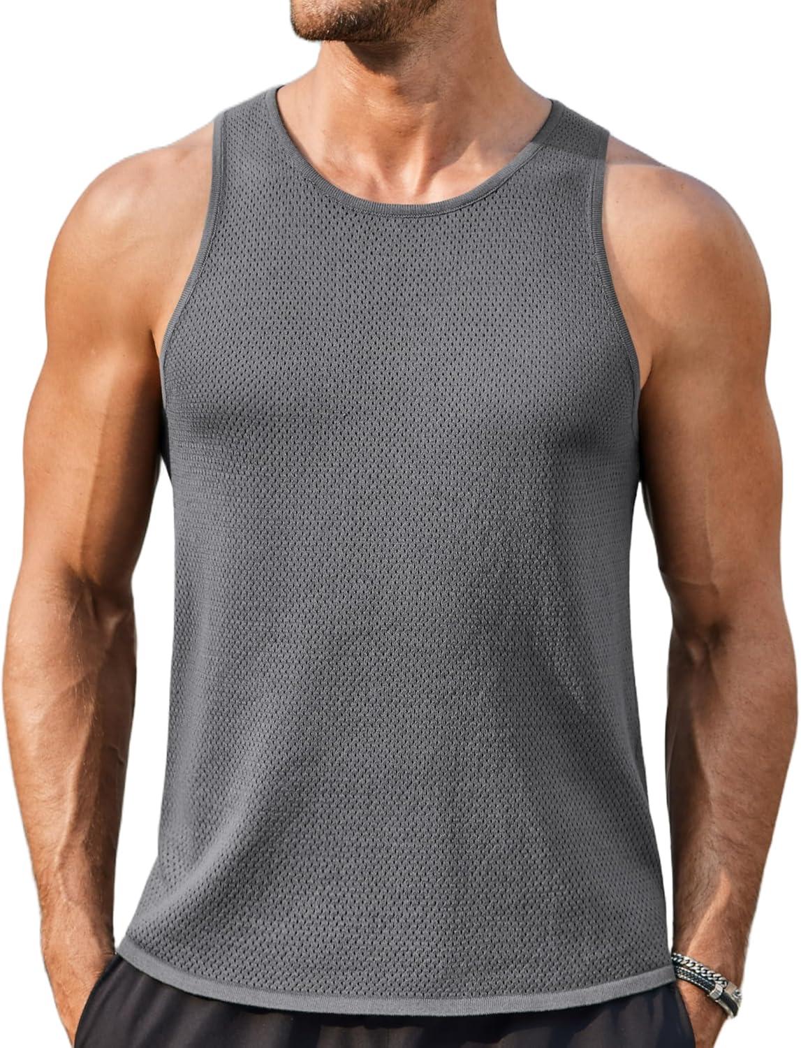 COOFANDY Mens Tank Tops Summer Beach Sleeveless Muscle Shirts Casual Knit Tanks Workout Gym Tee(Medium Gray)