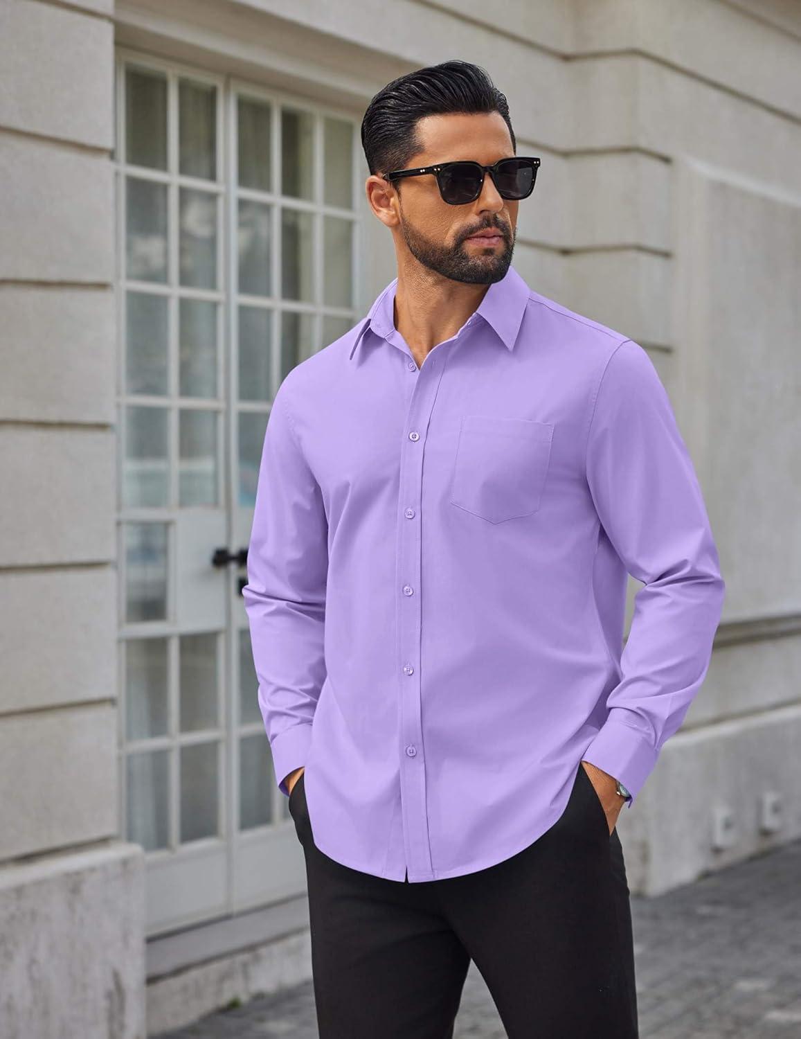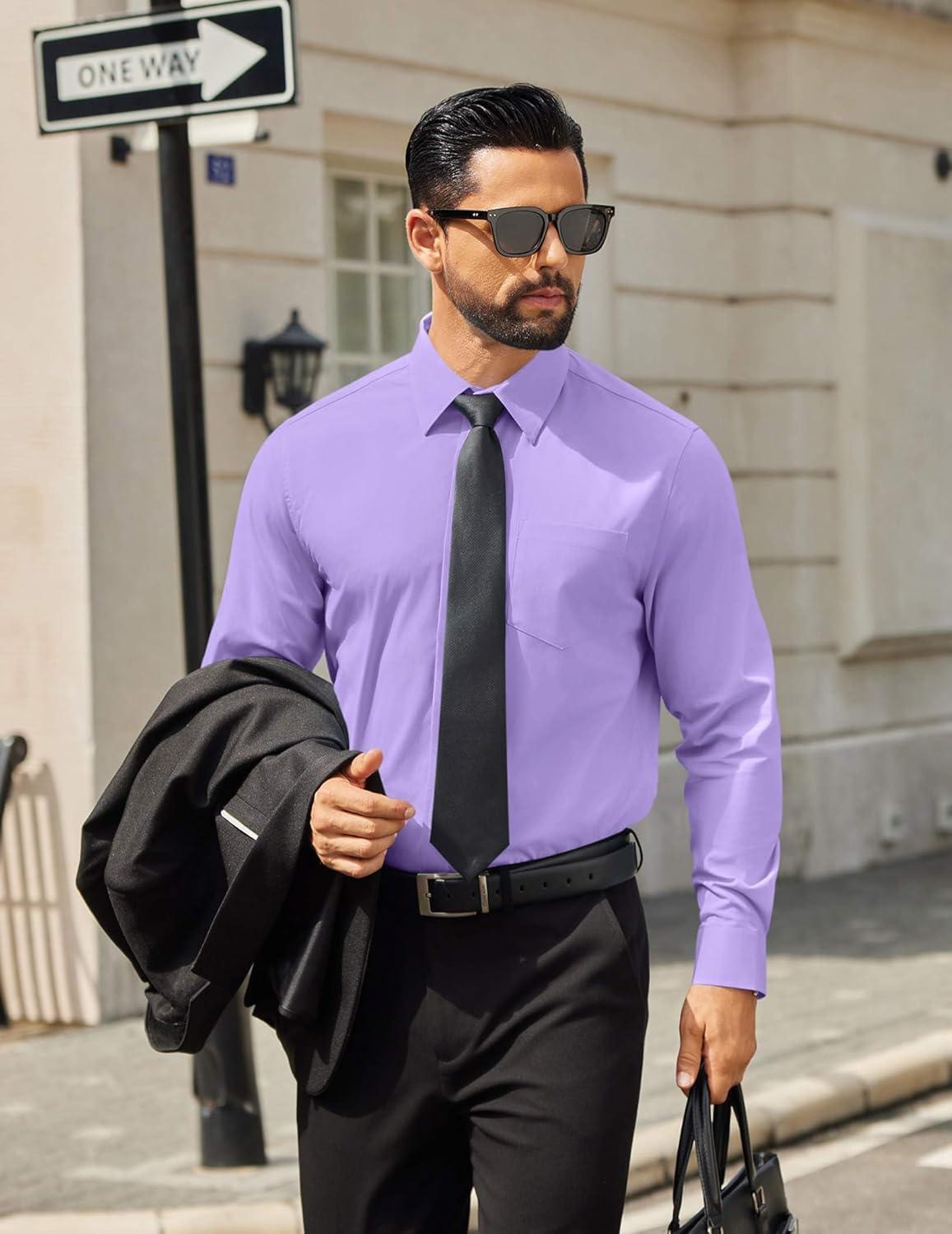 COOFANDY Mens Tech Dress Shirts Long Sleeve Poplin Formal Shirt Casual Button Down Shirts(Lavender)