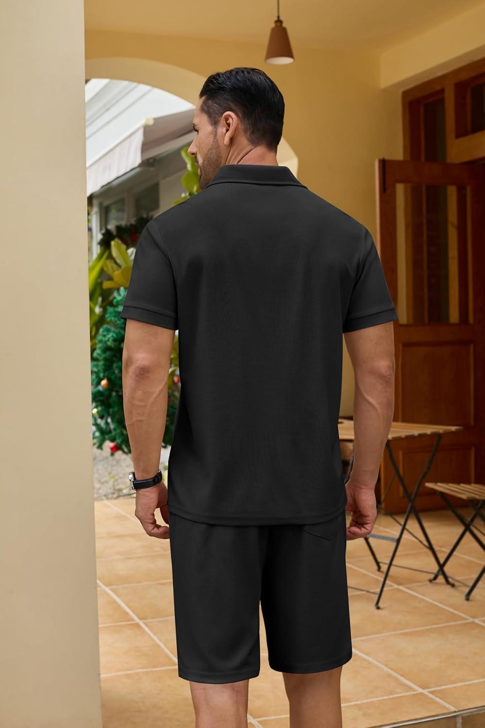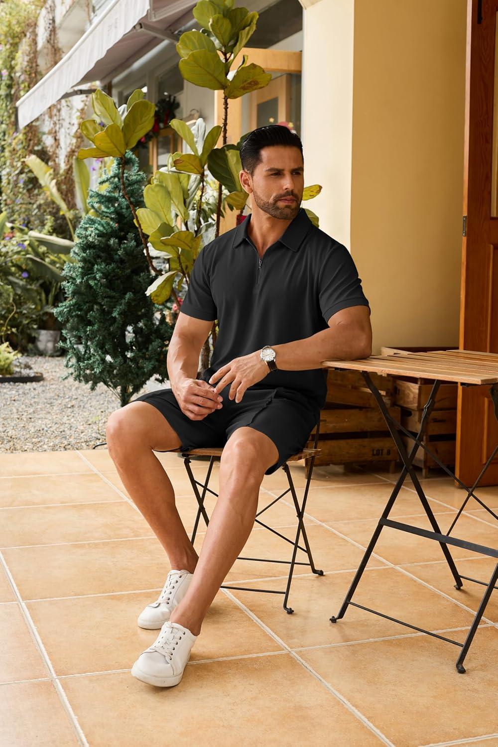 COOFANDY Men’s Track Suits 2 Piece Set Quarter Zip Polo Shirt and Shorts Set Summer Casual Outfits(Black)