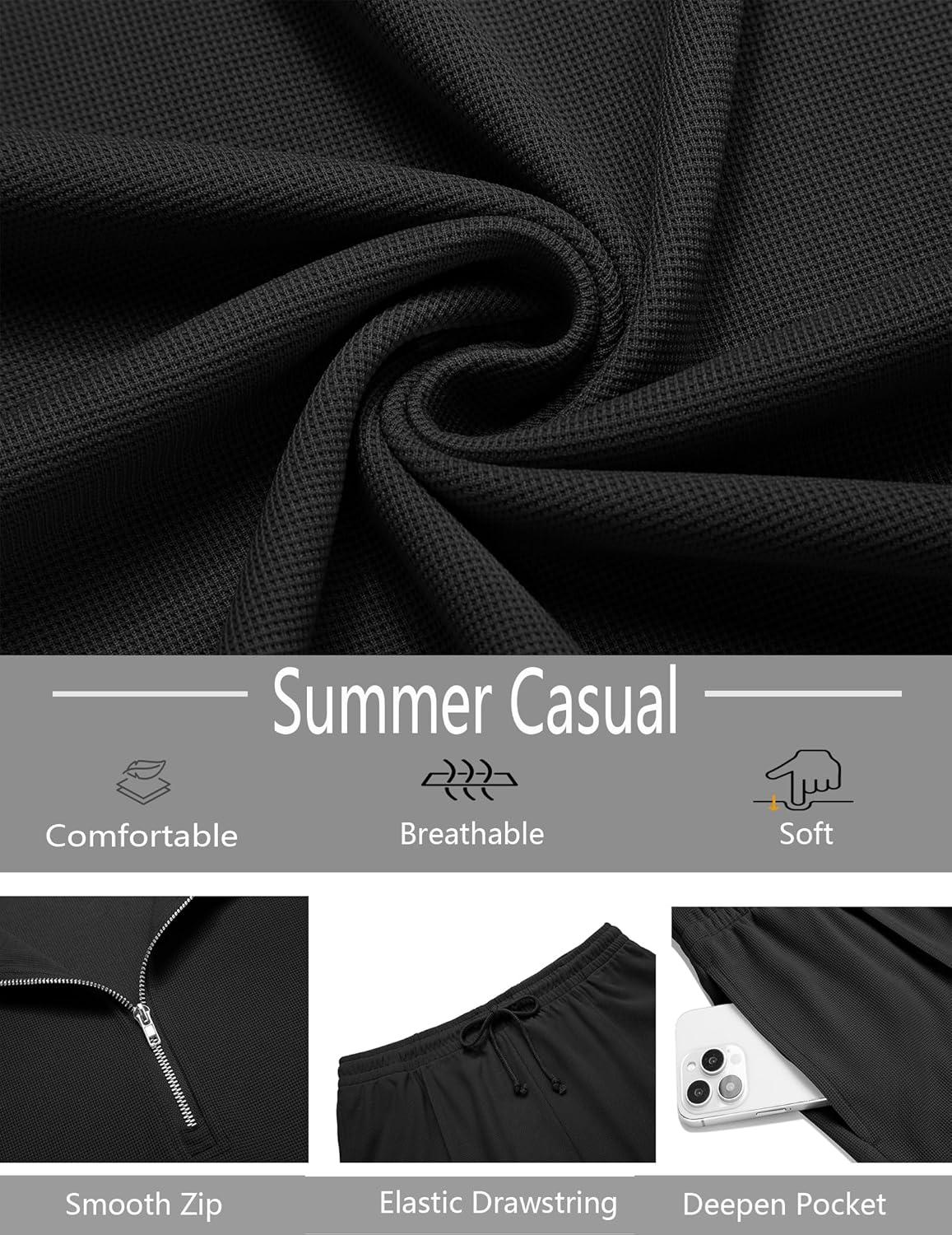 COOFANDY Men's Track Suits 2 Piece Set Quarter Zip Polo Shirt and Shorts Set Summer Casual Outfits(Black)