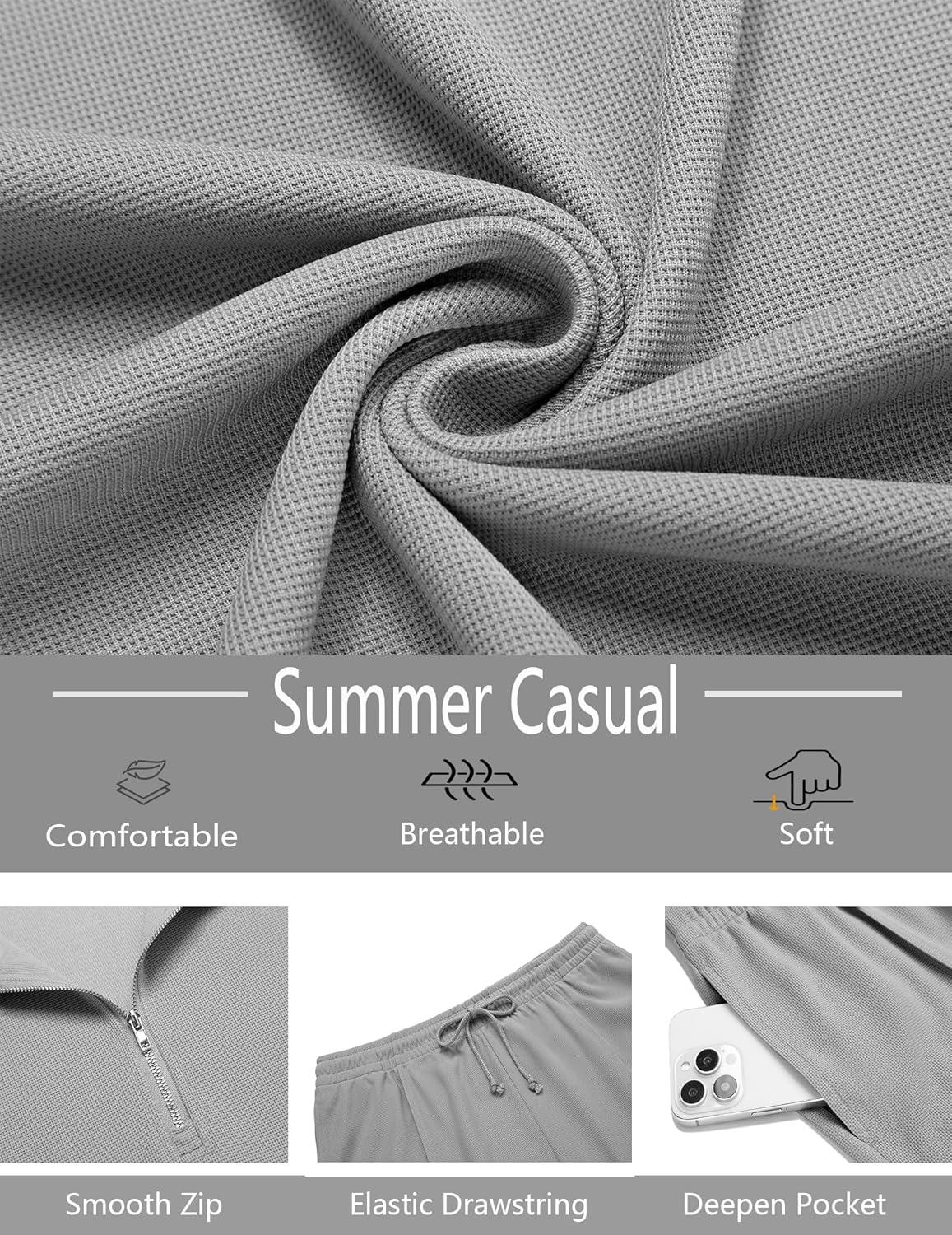 Get your hands on our newest COOFANDY Men’s Track Suits 2 Piece Set Quarter Zip Polo Shirt and Shorts Set Summer Casual Outfits(Light Grey) and enjoy a limited-time discount offer.