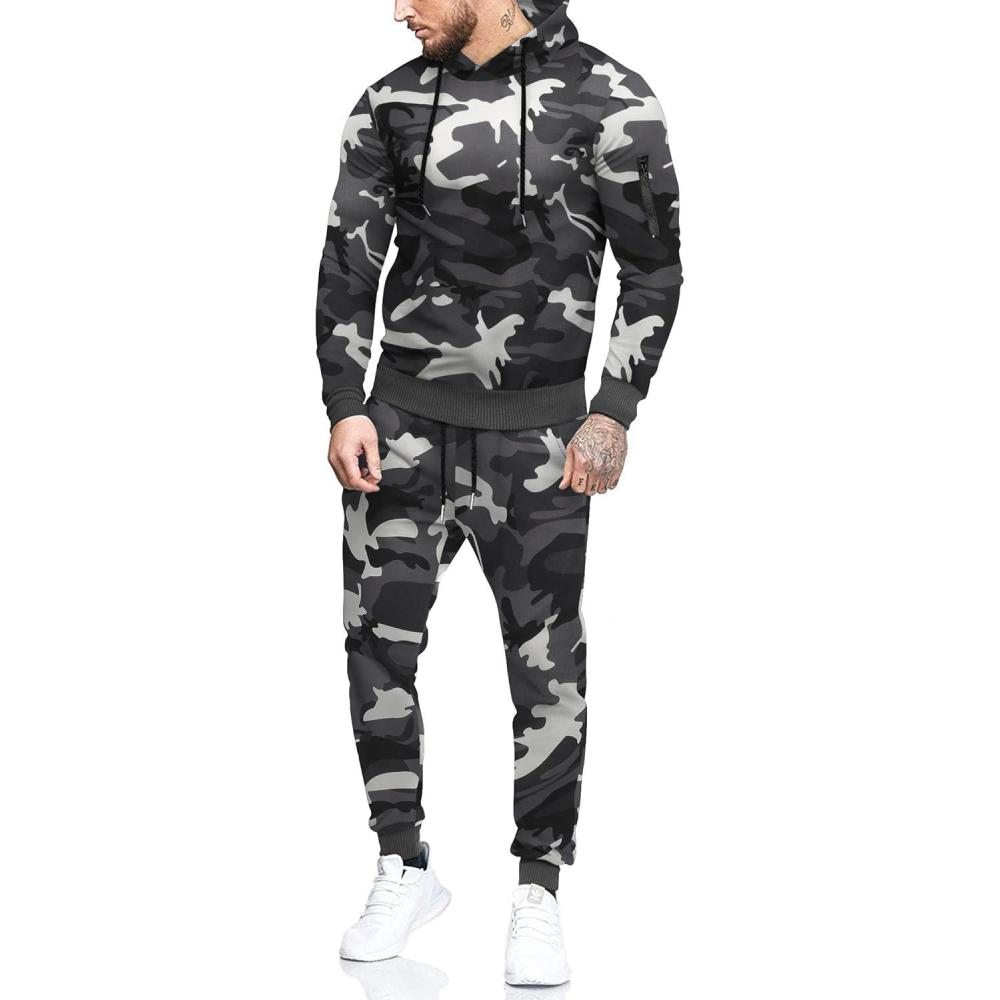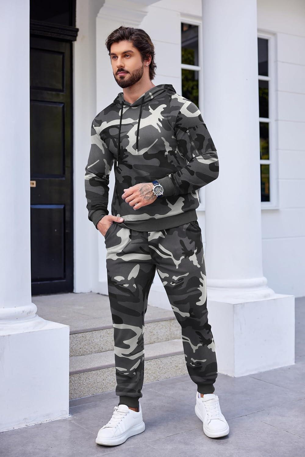 COOFANDY Men's Tracksuit 2 Piece Hooded Athletic Sweatsuits Casual Running Jogging Sport Suit Sets(Grey Camo)