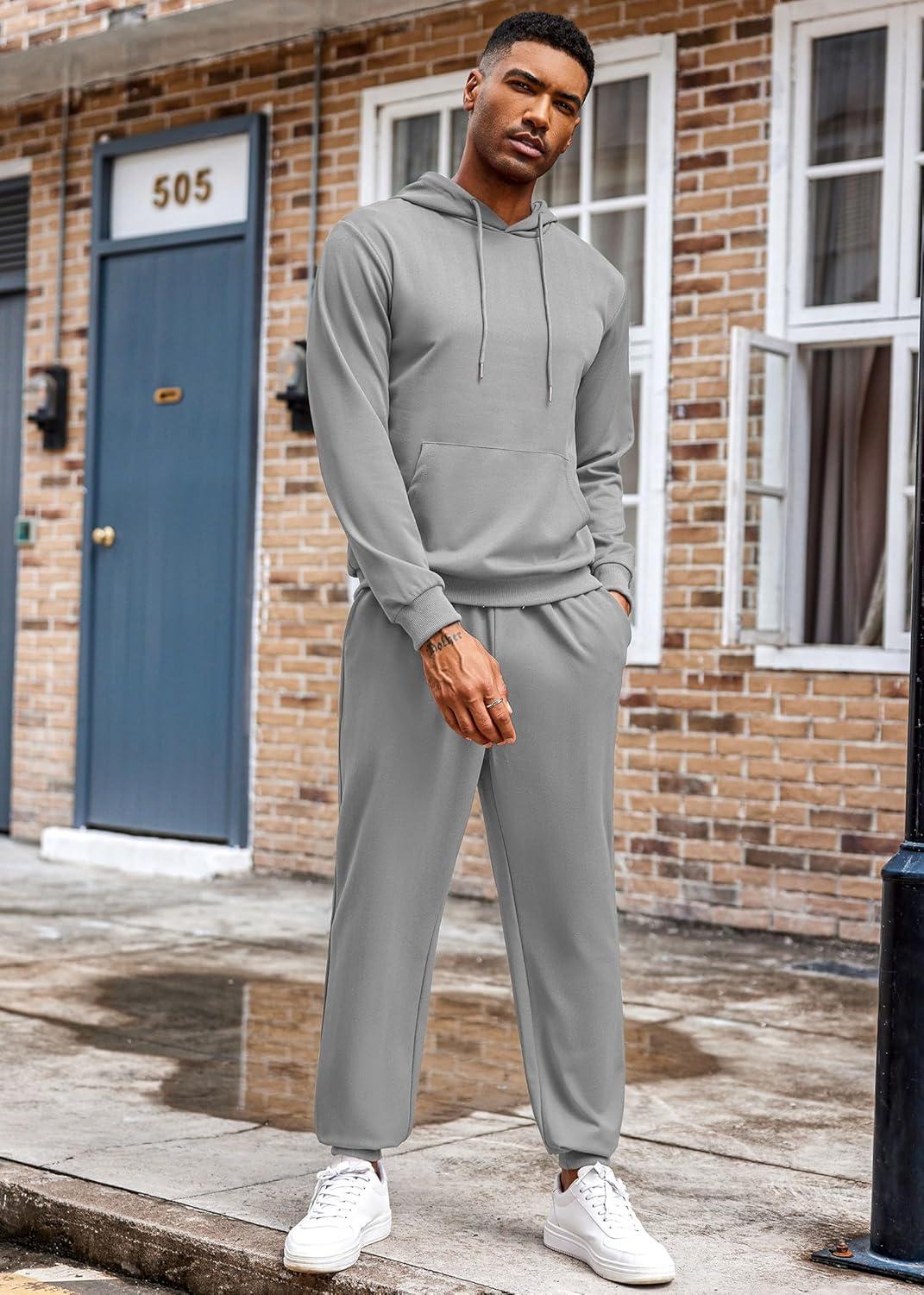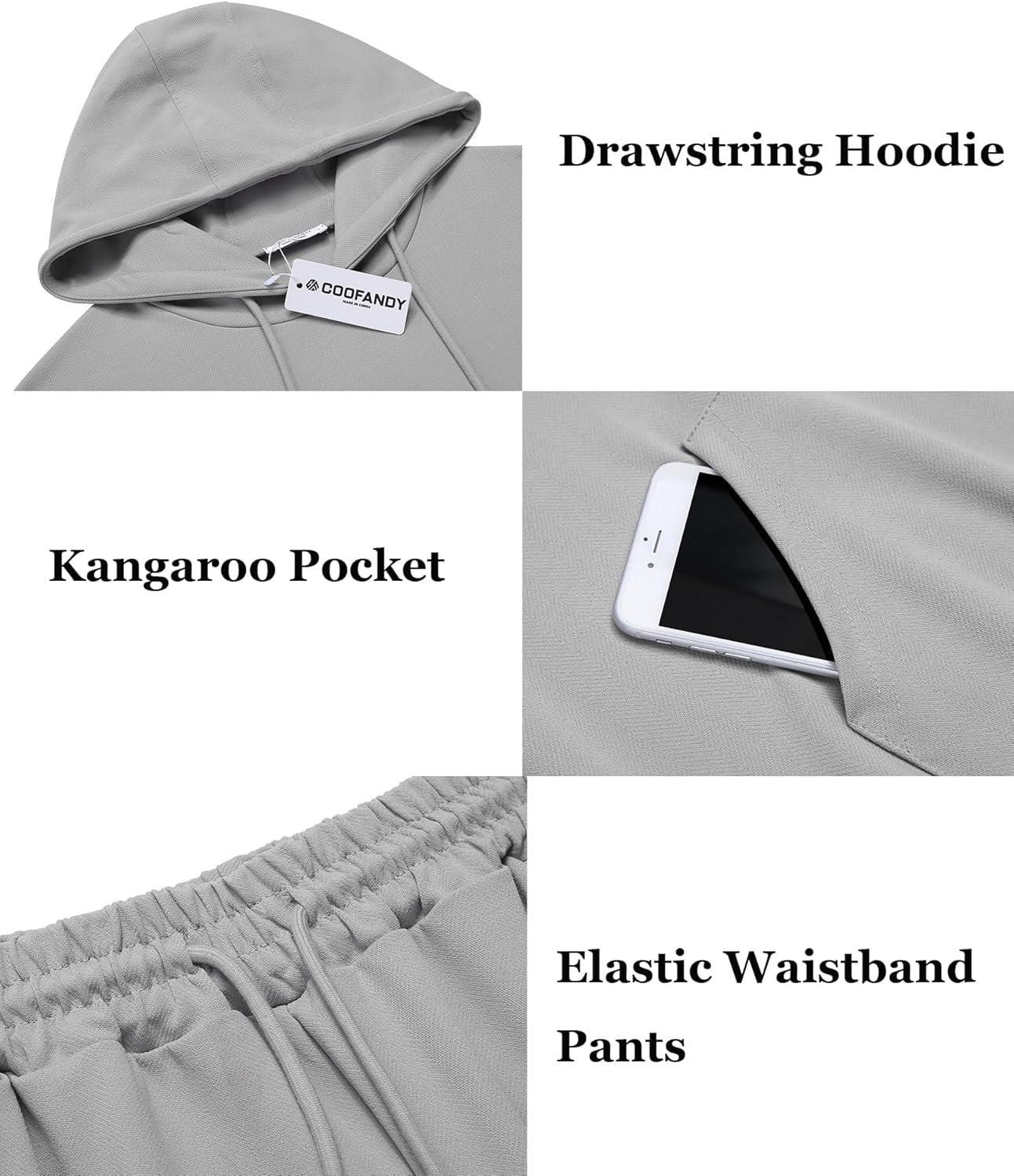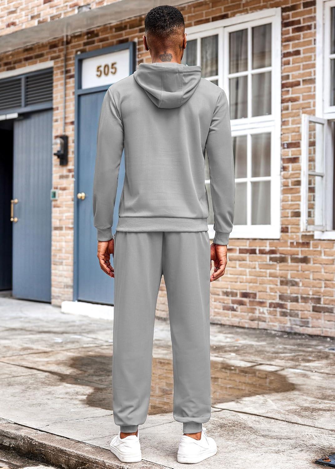COOFANDY Men's Tracksuit 2 Piece Hoodie Athletic Sweatsuits Casual Jogging Suit Sets(Grey)