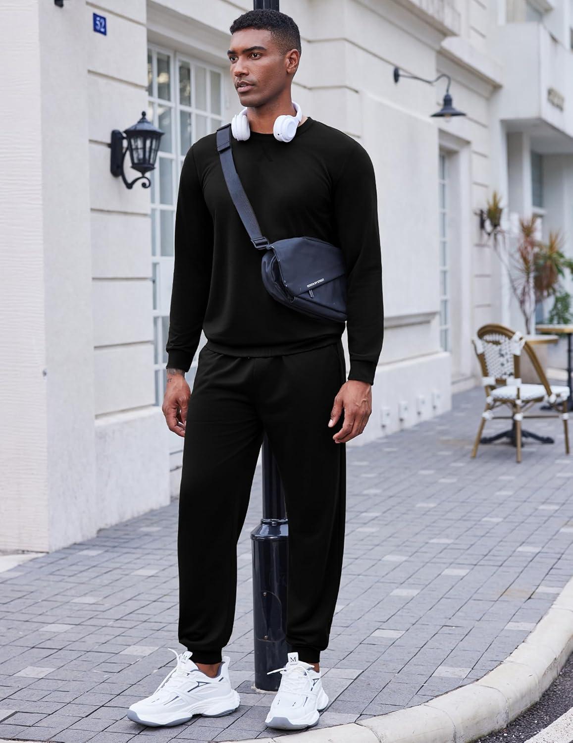 COOFANDY Men's Tracksuit 2 Piece Long Sleeve Pullover Jogging Track Suit Athletic Casual Sweatsuit(1-black)