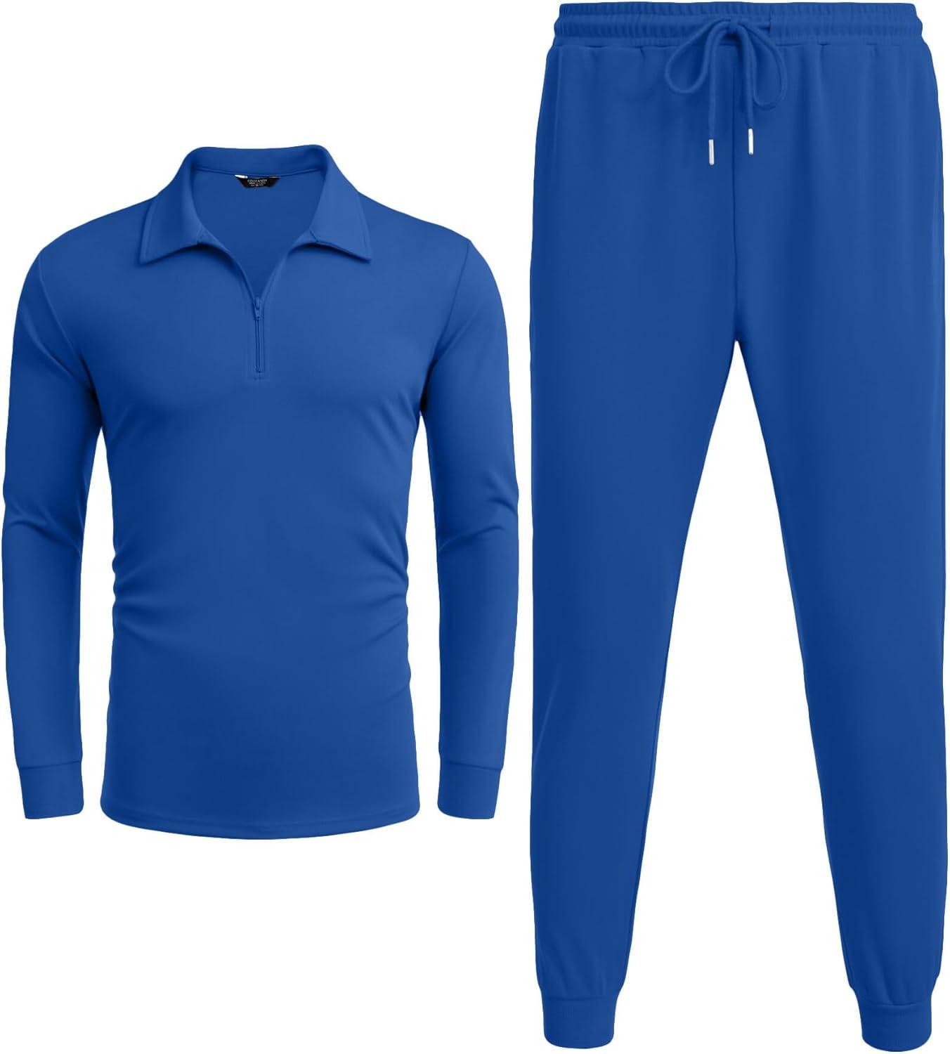 COOFANDY Men's Tracksuit 2 Piece Quarter Zip Polo Athletic Sweatsuits Casual Running Jogging Sport Suit Sets(Blue)