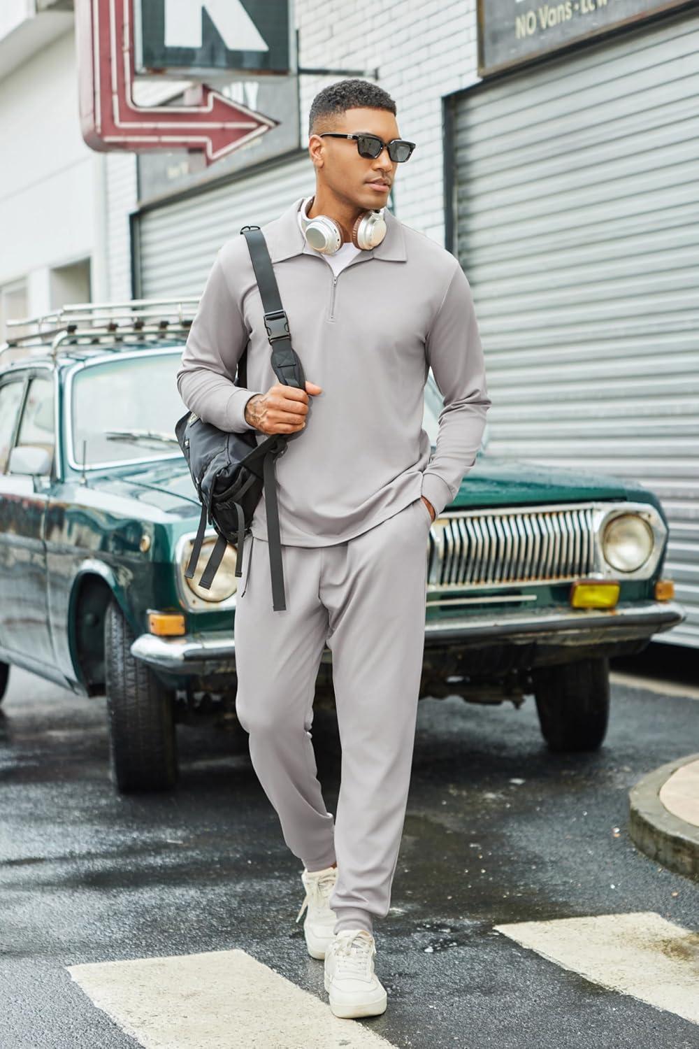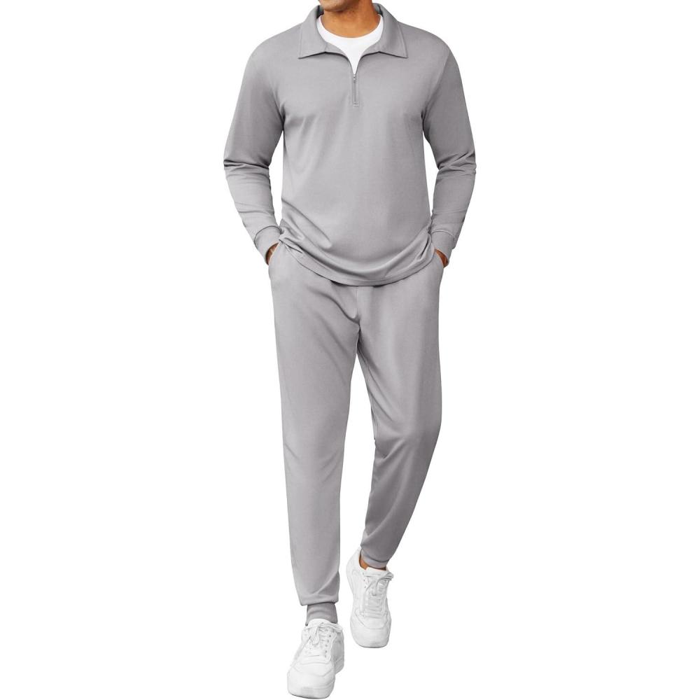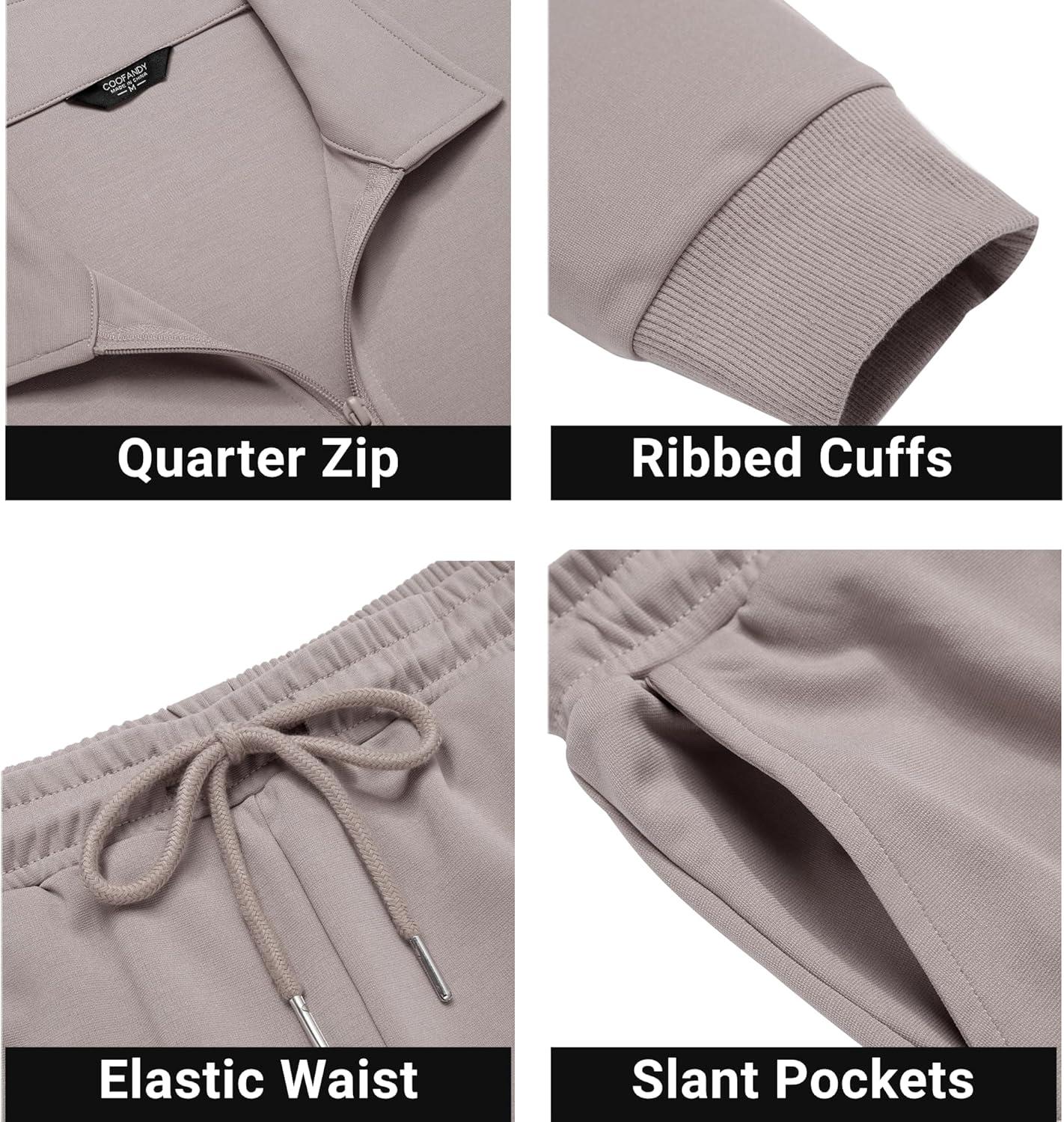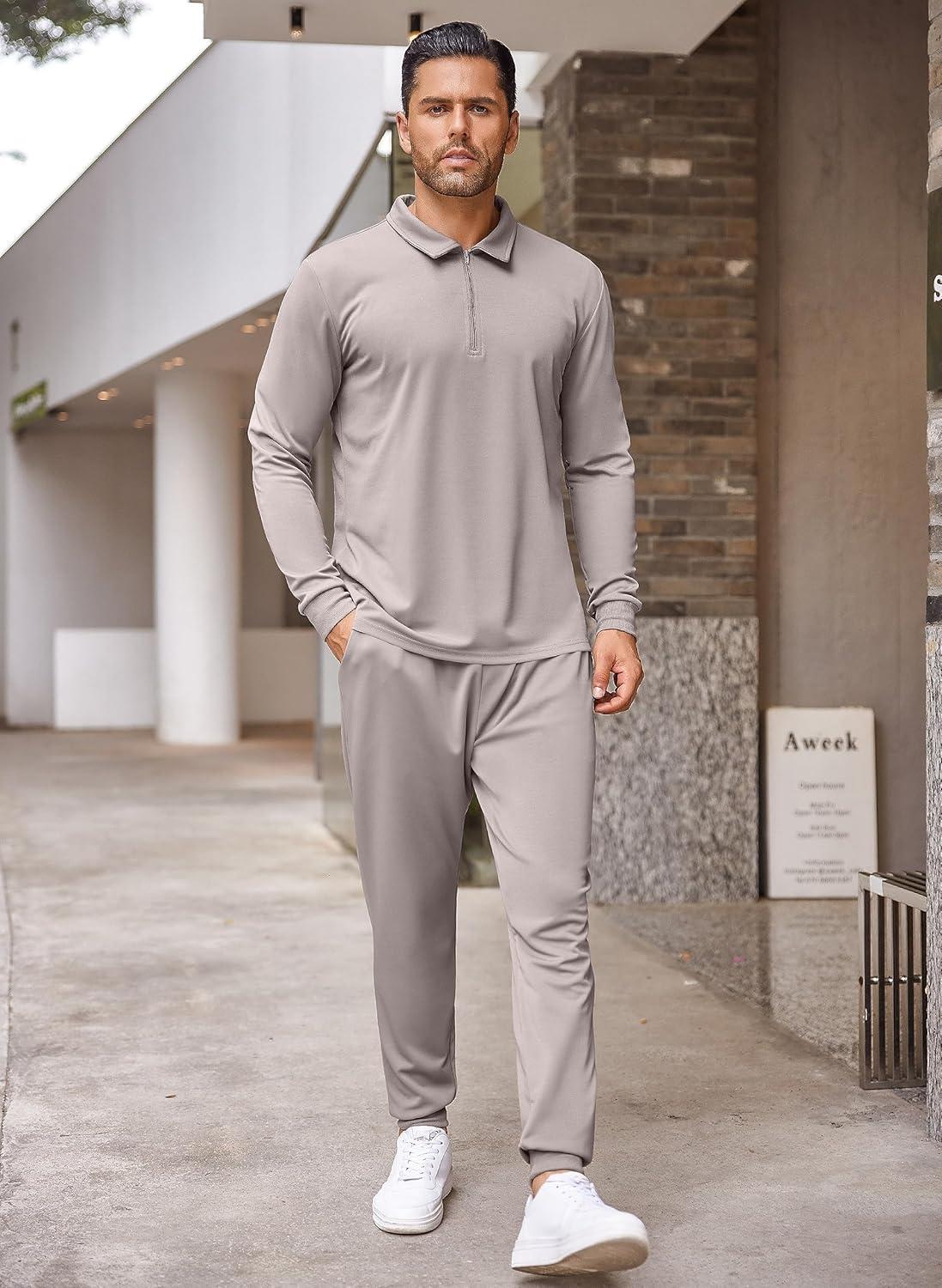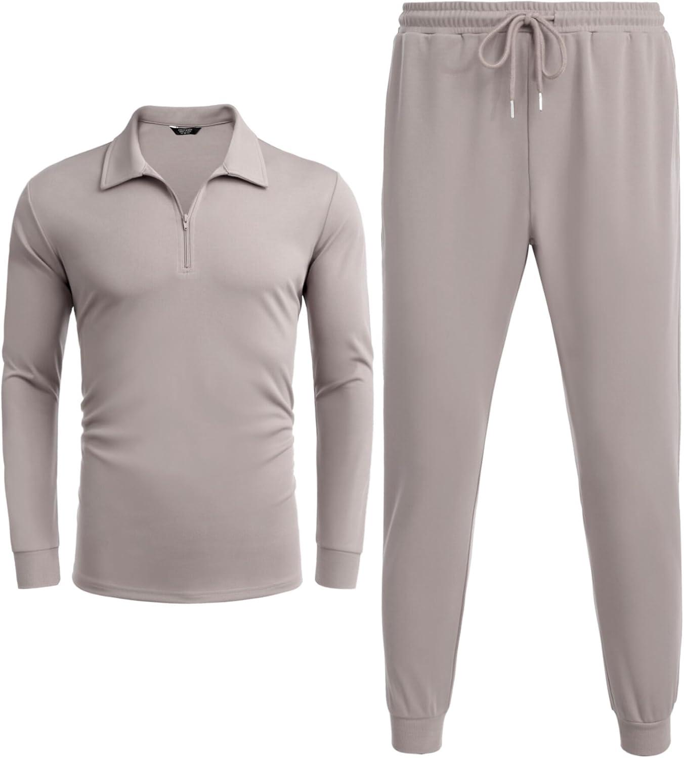 COOFANDY Men's Tracksuit 2 Piece Quarter Zip Polo Athletic Sweatsuits Casual Running Jogging Sport Suit Sets(Grey)