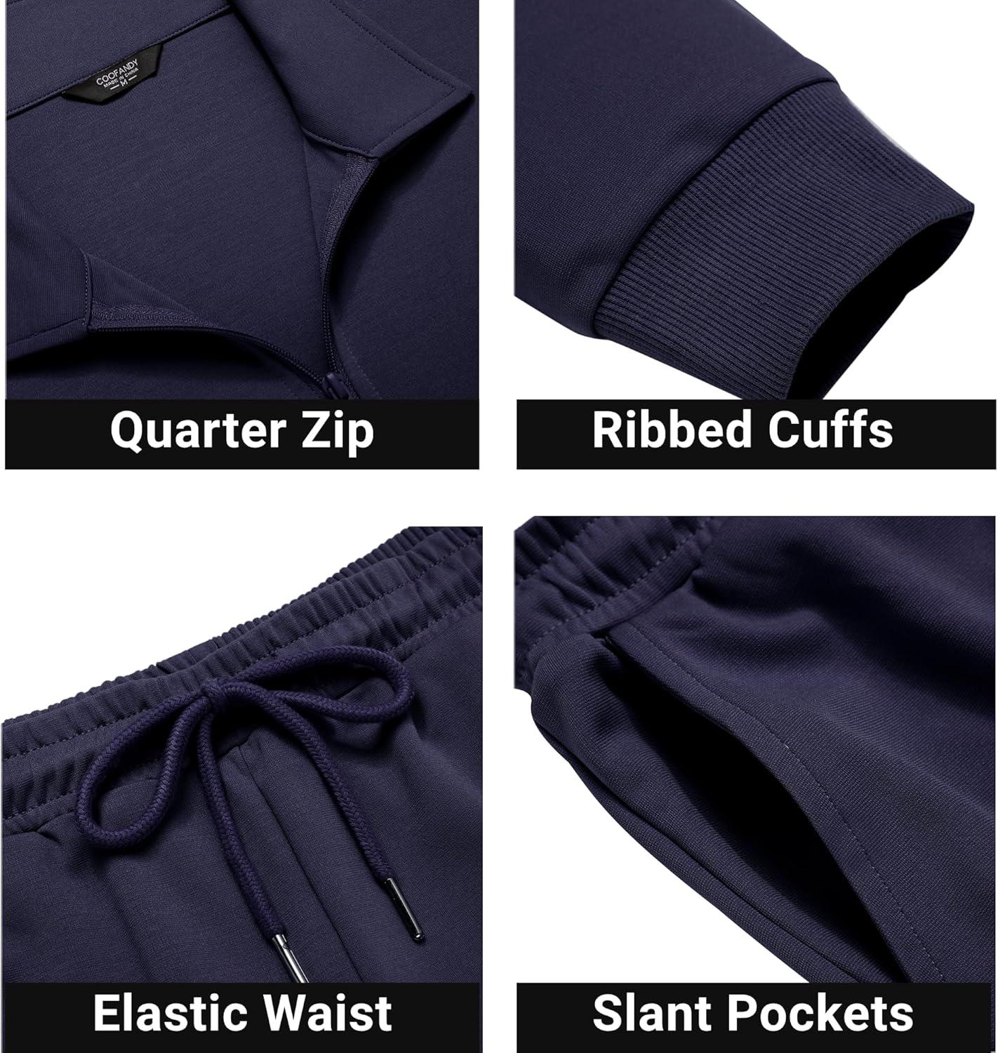 Be the first to review “COOFANDY Men’s Tracksuit 2 Piece Quarter Zip Polo Athletic Sweatsuits Casual Running Jogging Sport Suit Sets(Navy Blue)”