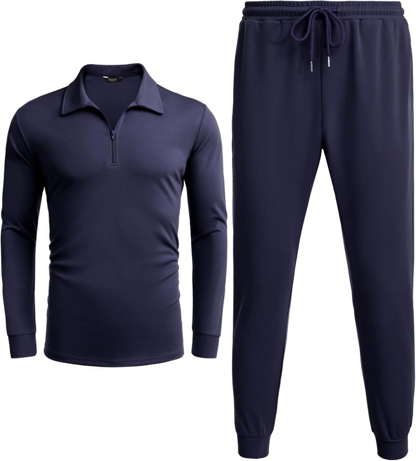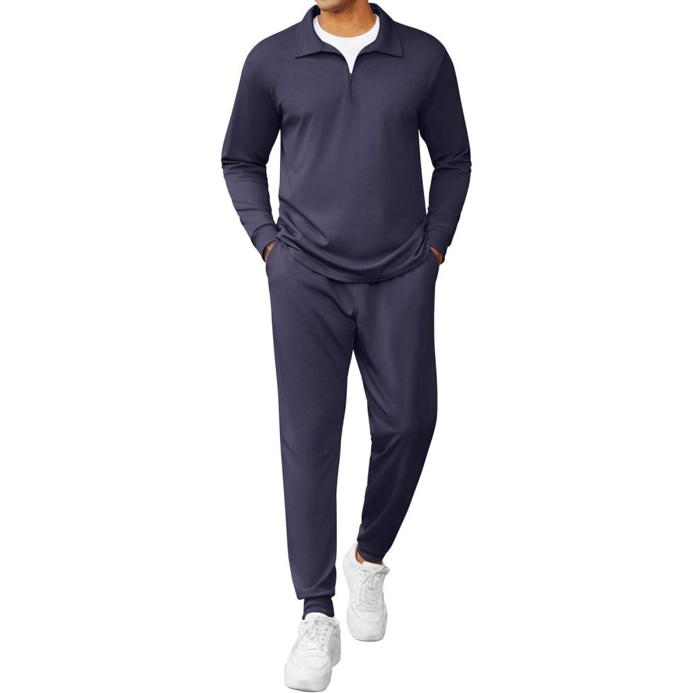 COOFANDY Men's Tracksuit 2 Piece Quarter Zip Polo Athletic Sweatsuits Casual Running Jogging Sport Suit Sets(Navy Blue)