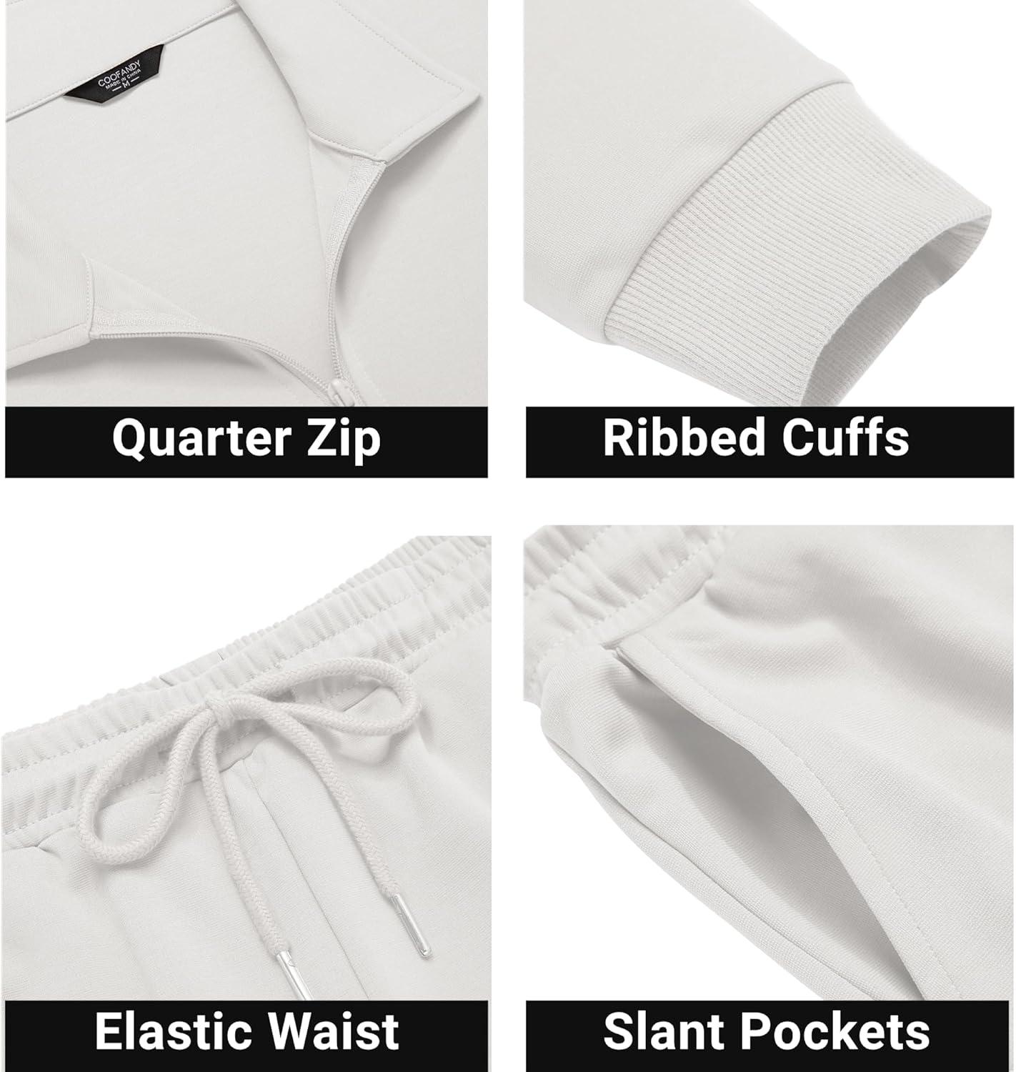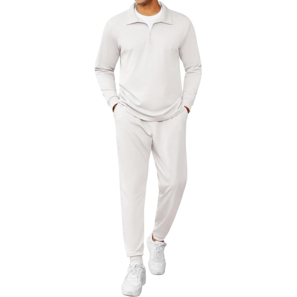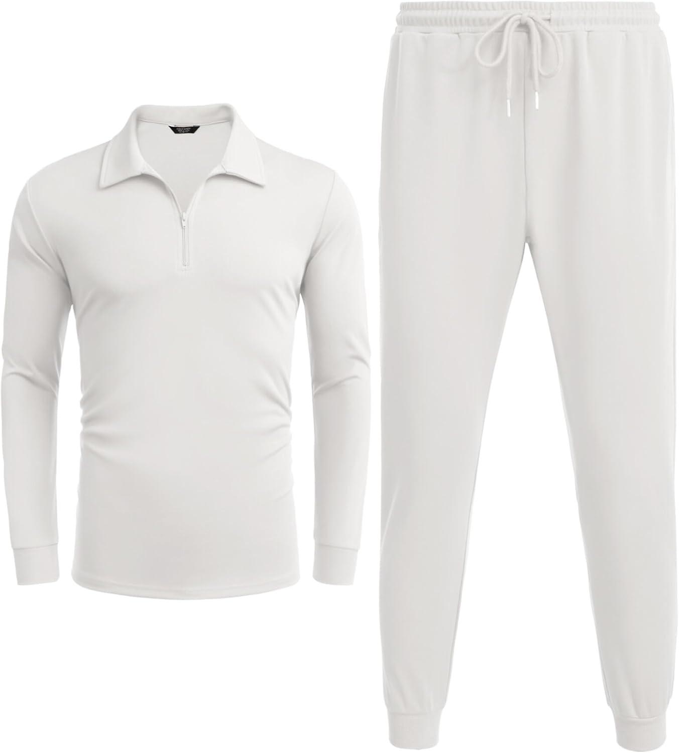 COOFANDY Men's Tracksuit 2 Piece Quarter Zip Polo Athletic Sweatsuits Casual Running Jogging Sport Suit Sets(White)