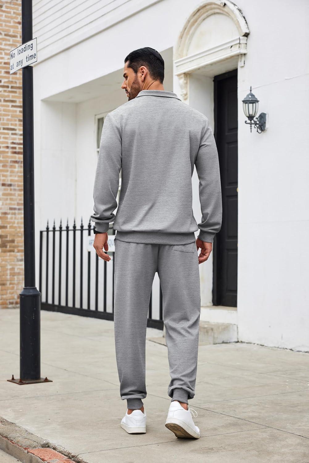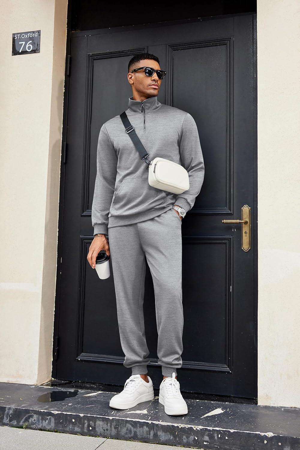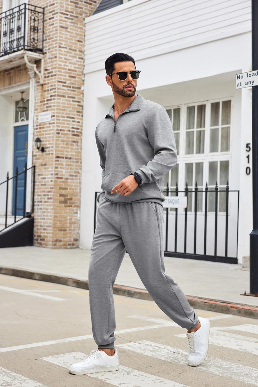 COOFANDY Men's Tracksuit 2 Piece Quarter Zip Sweatsuit Sets Casual Athletic Running Jogging Suits(Heather Grey)