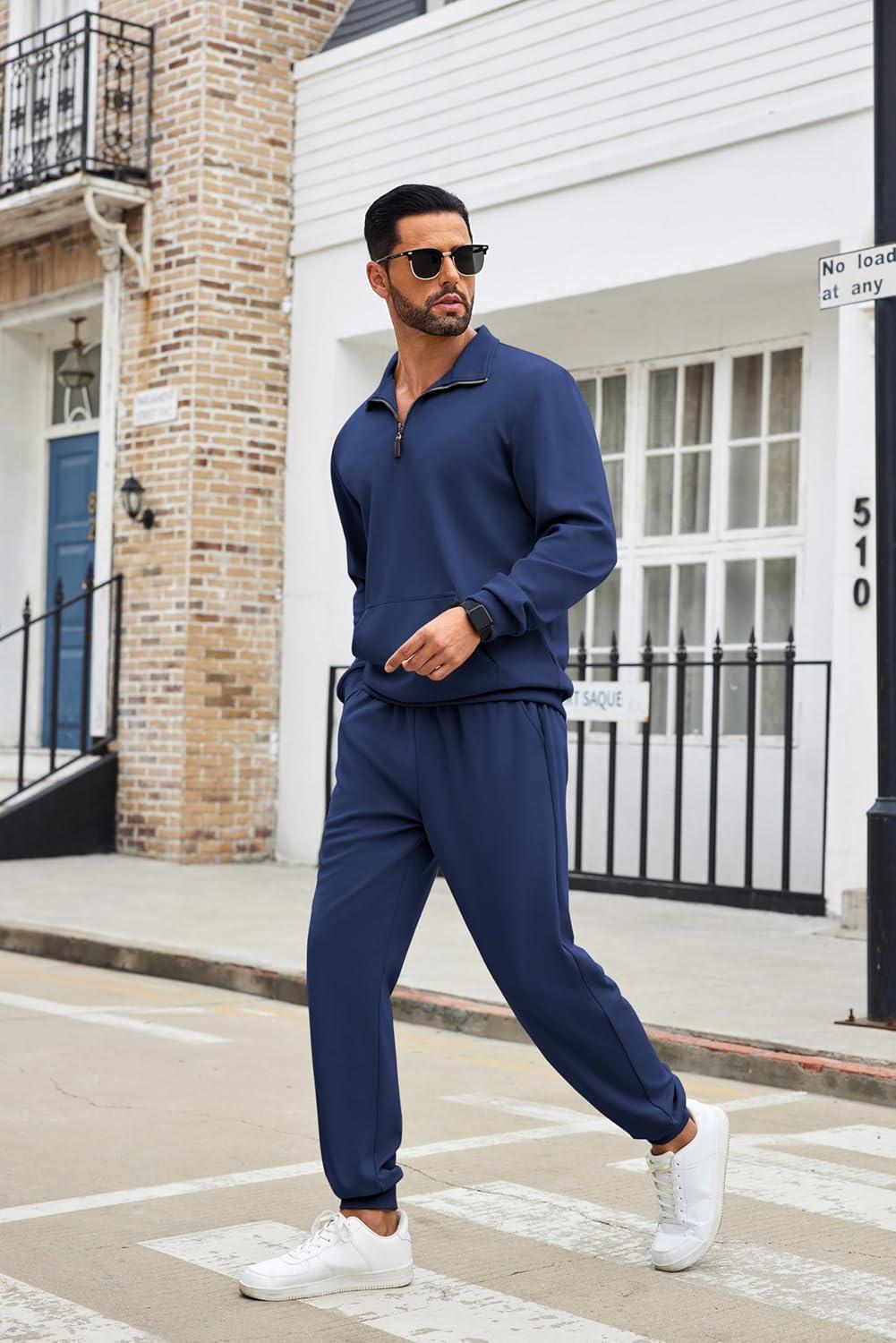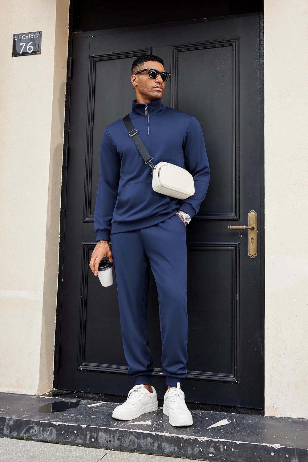 COOFANDY Men's Tracksuit 2 Piece Quarter Zip Sweatsuit Sets Casual Athletic Running Jogging Suits(Navy Blue)