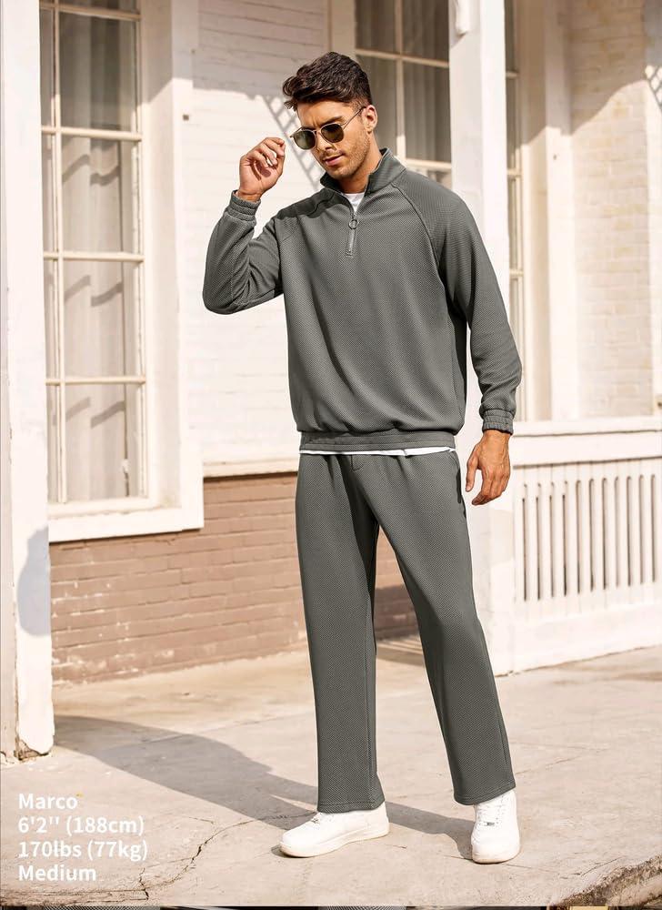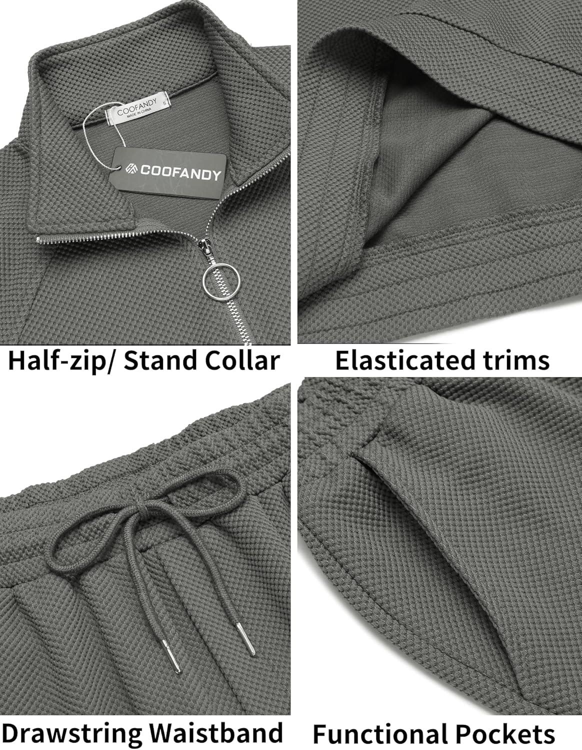 COOFANDY Men's Tracksuit 2 Piece Relaxed Fit Half-zip Sweatsuits Athletic Running Jogging Suit Sets(Gray)