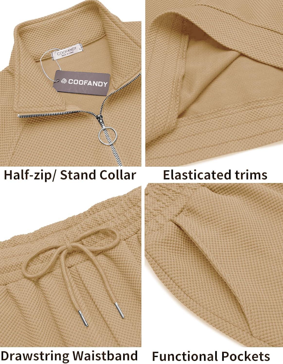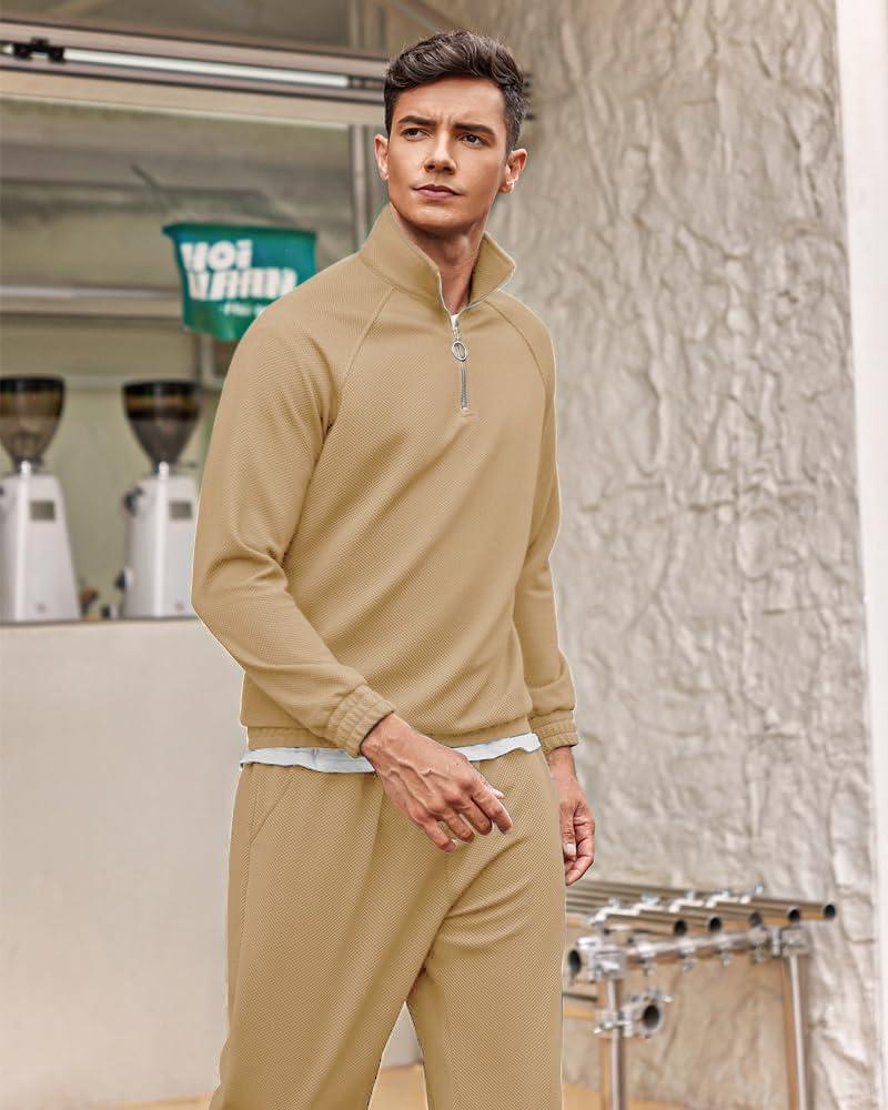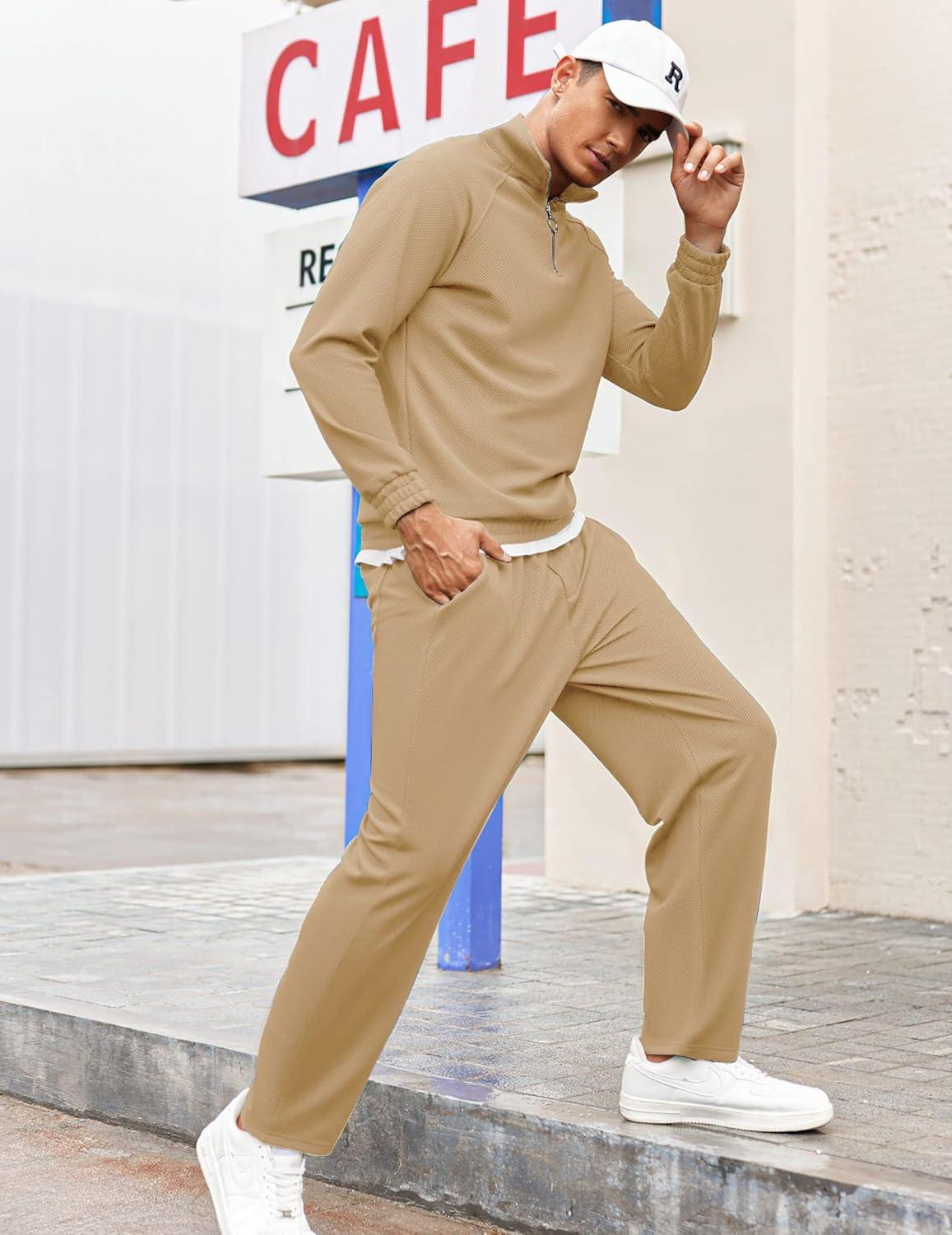 COOFANDY Men's Tracksuit 2 Piece Relaxed Fit Half-zip Sweatsuits Athletic Running Jogging Suit Sets(Khaki)